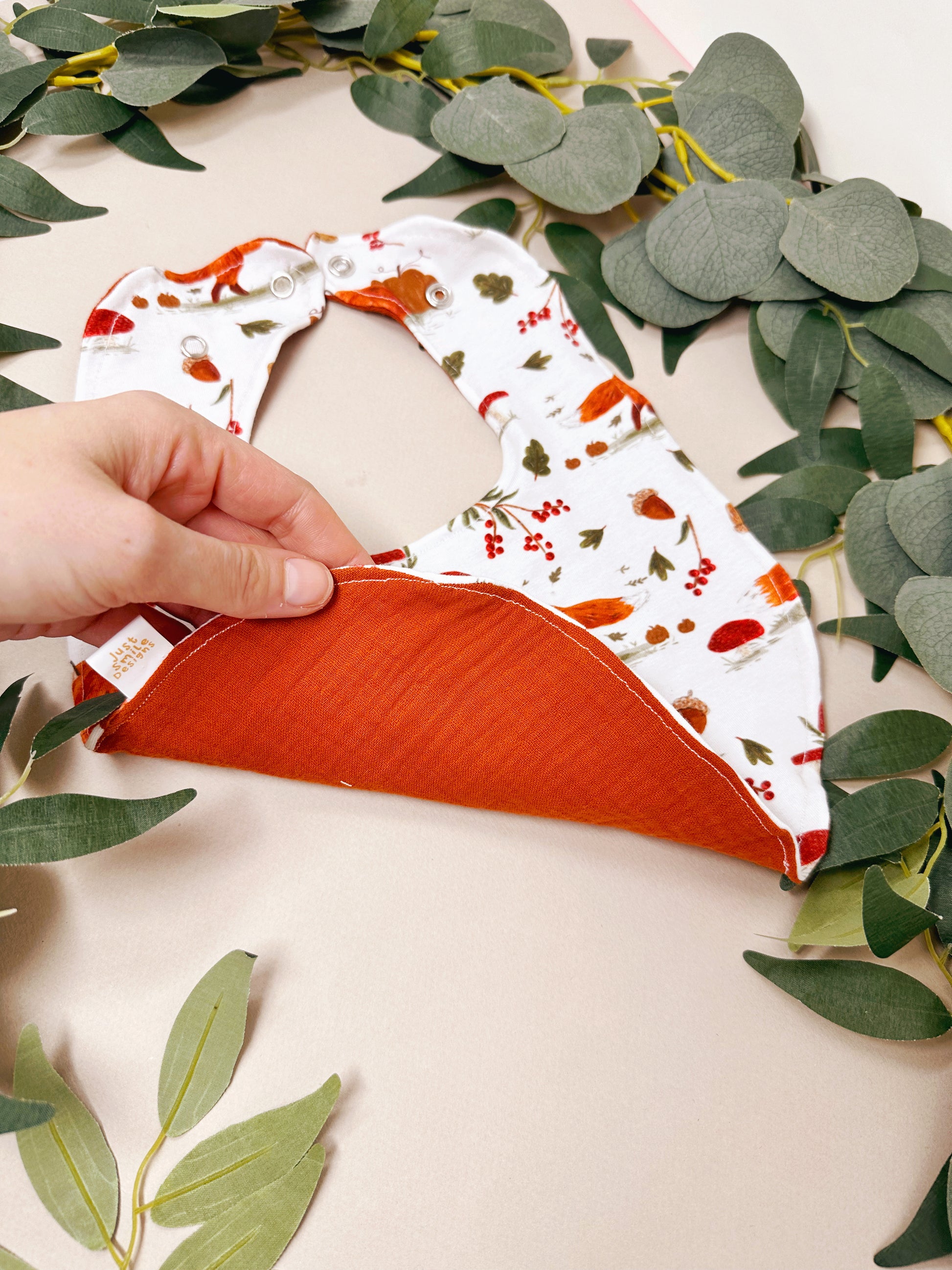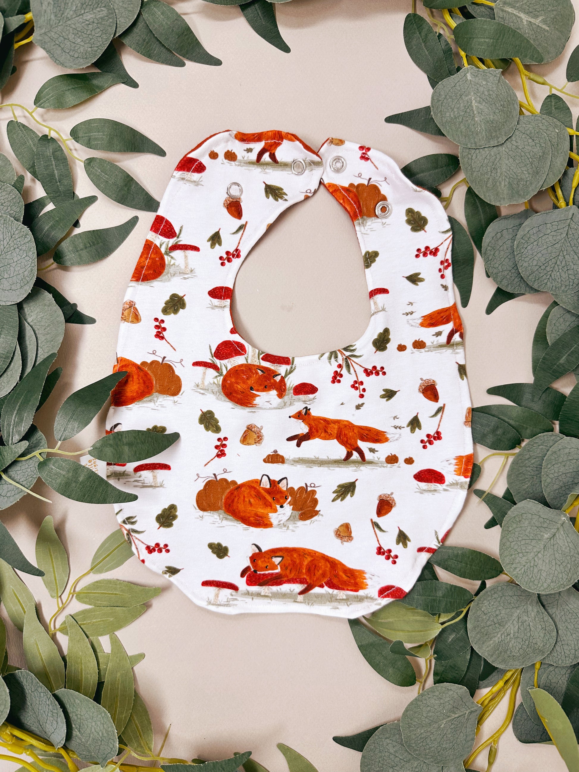 The fabric designs are all mine from original drawings. Each bib will differ in pattern as it’s cut from my floral material.