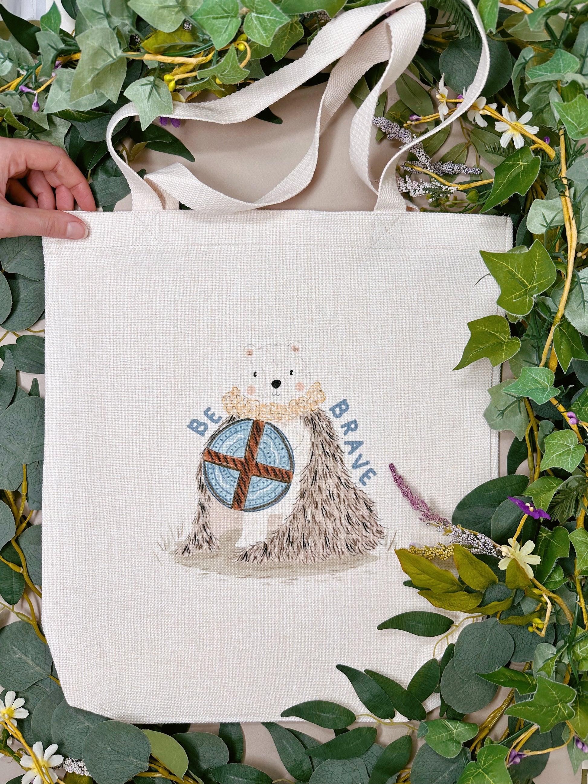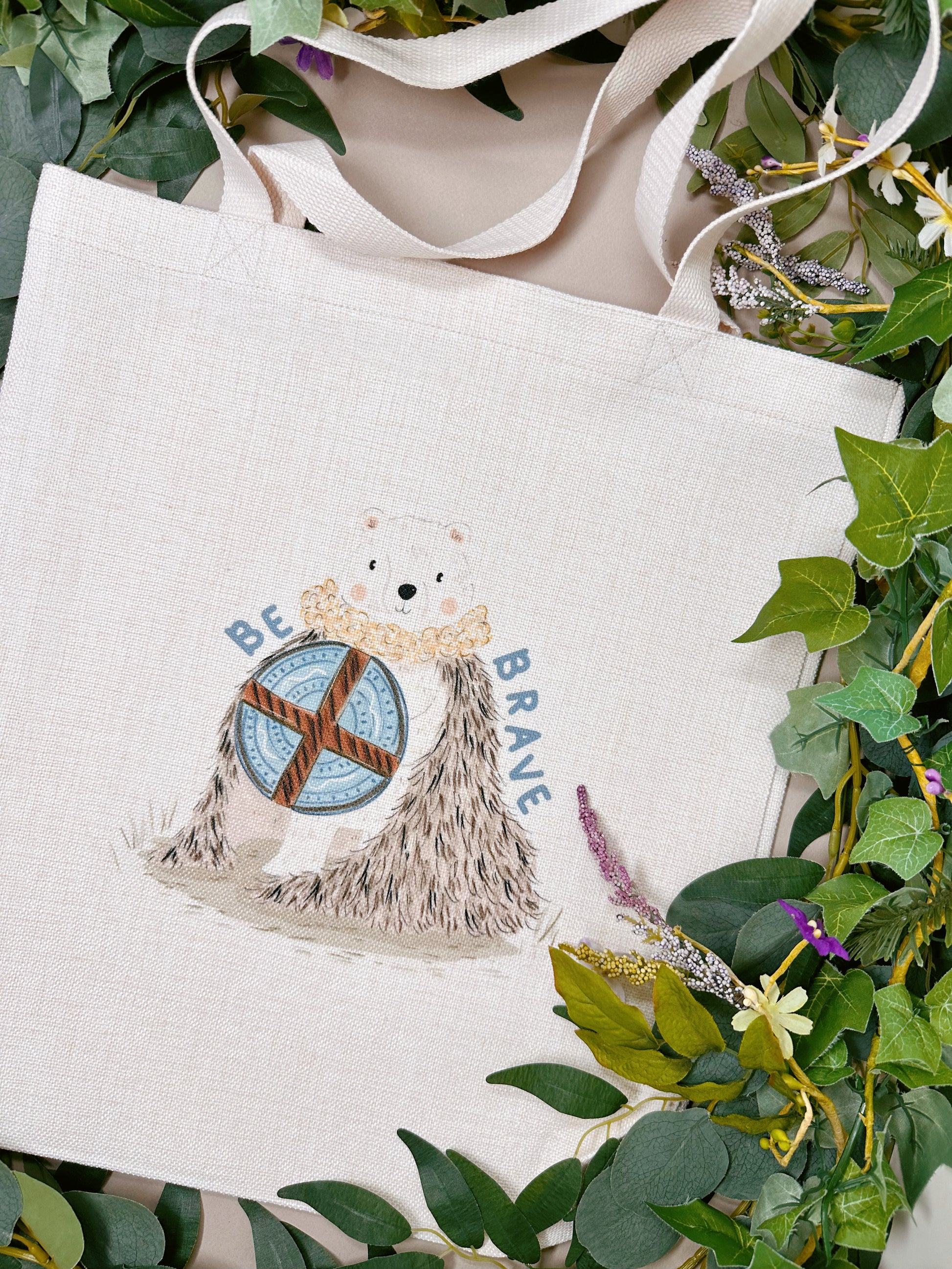 Be Brave Bear Linen Tote Bag