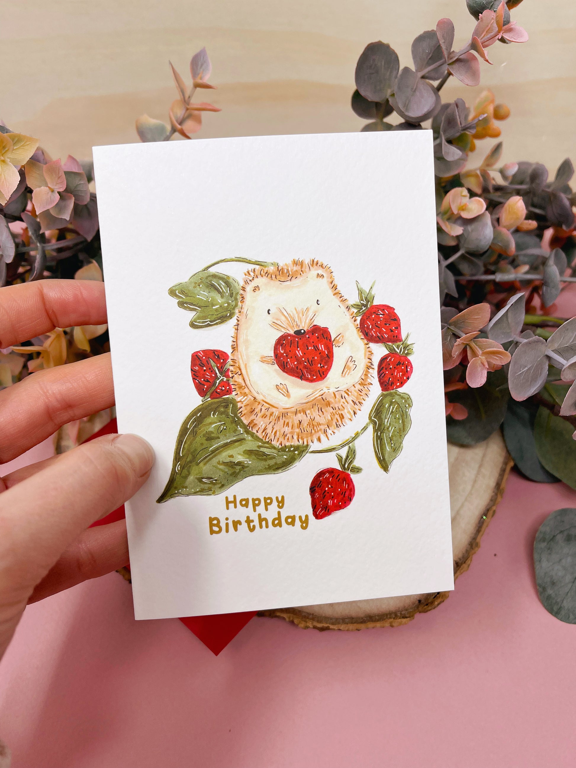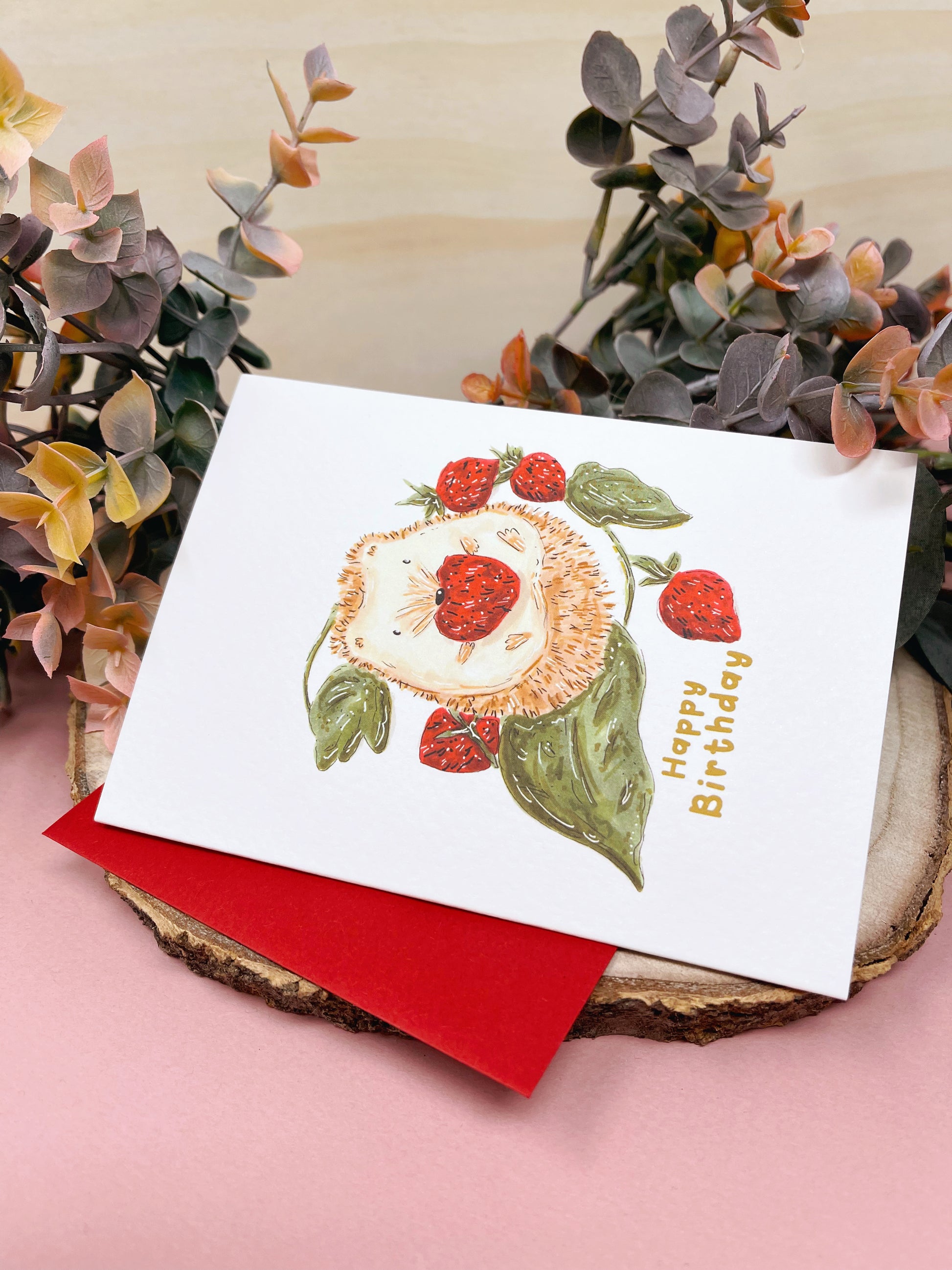 Hedgehog Strawberry Birthday Card