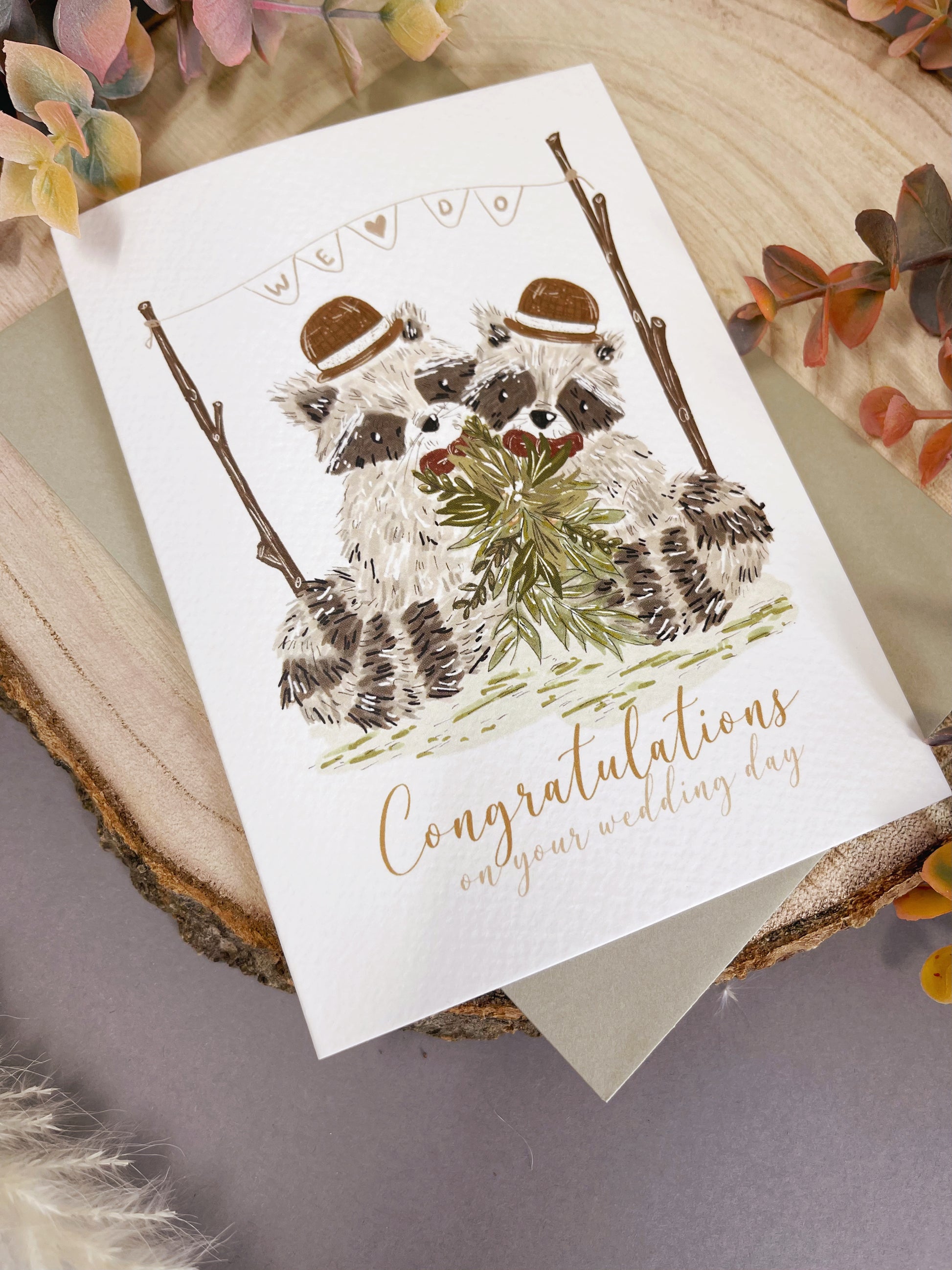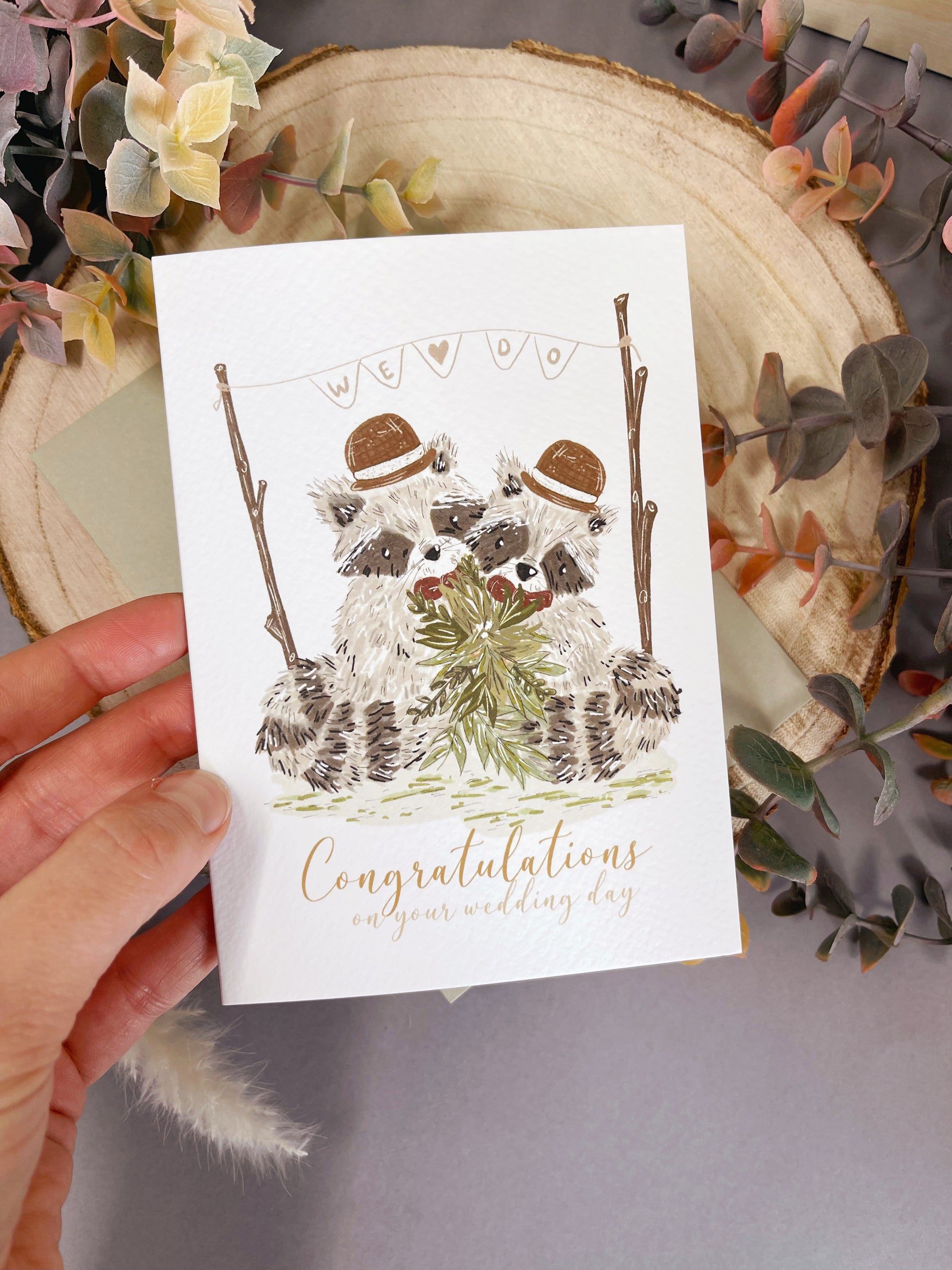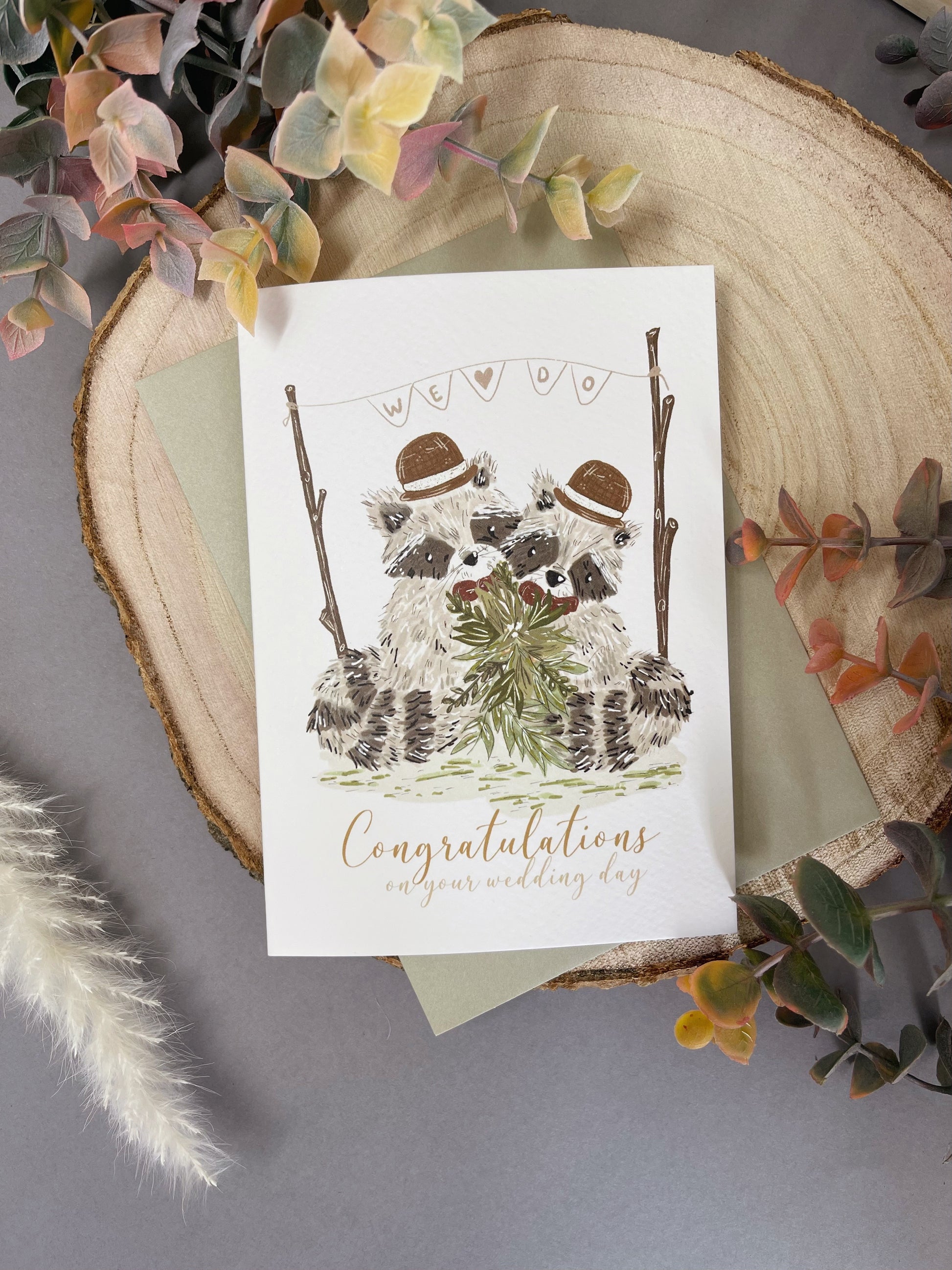 Bohemian Raccoon Wedding Card - Mr & Mr