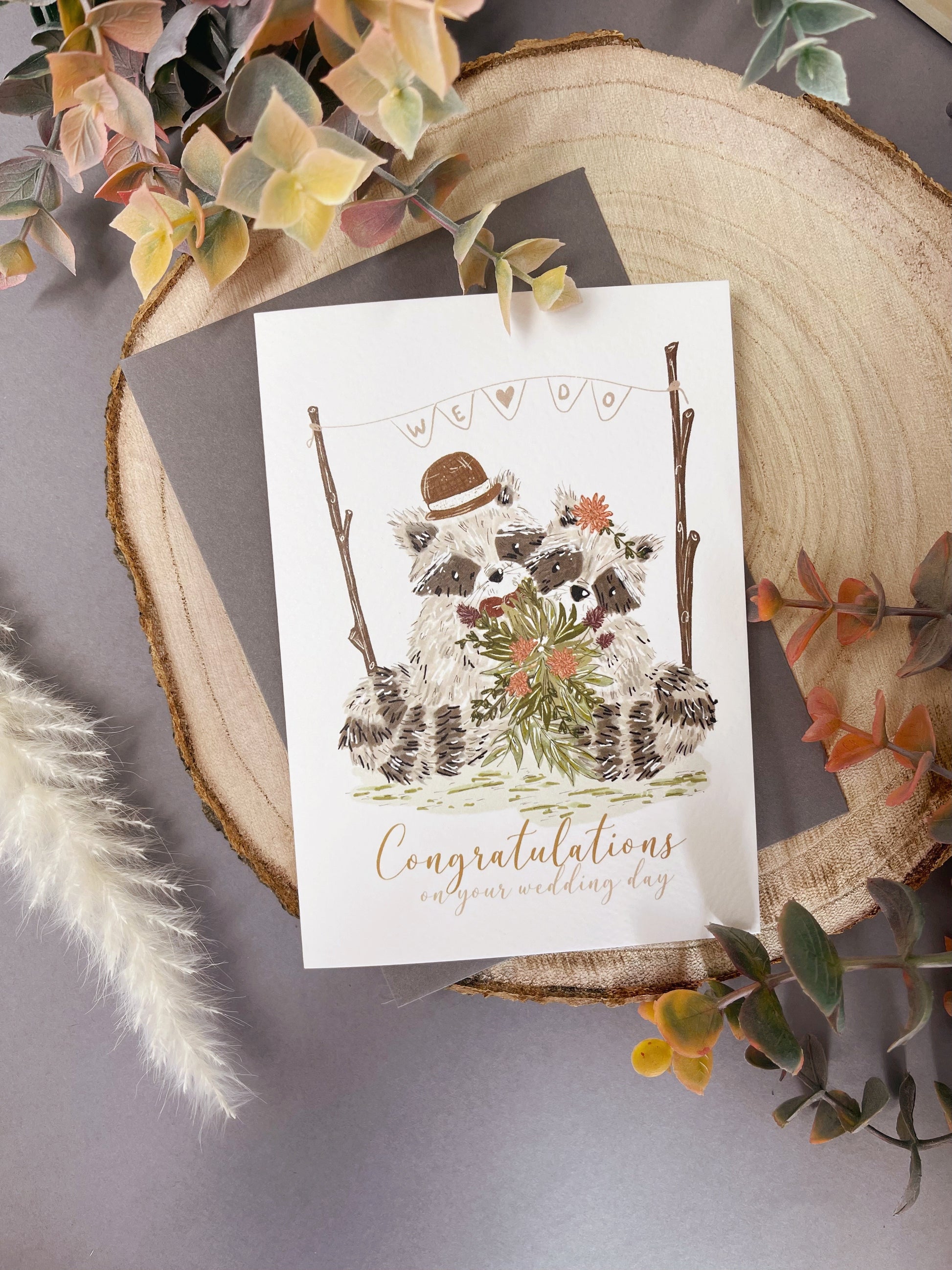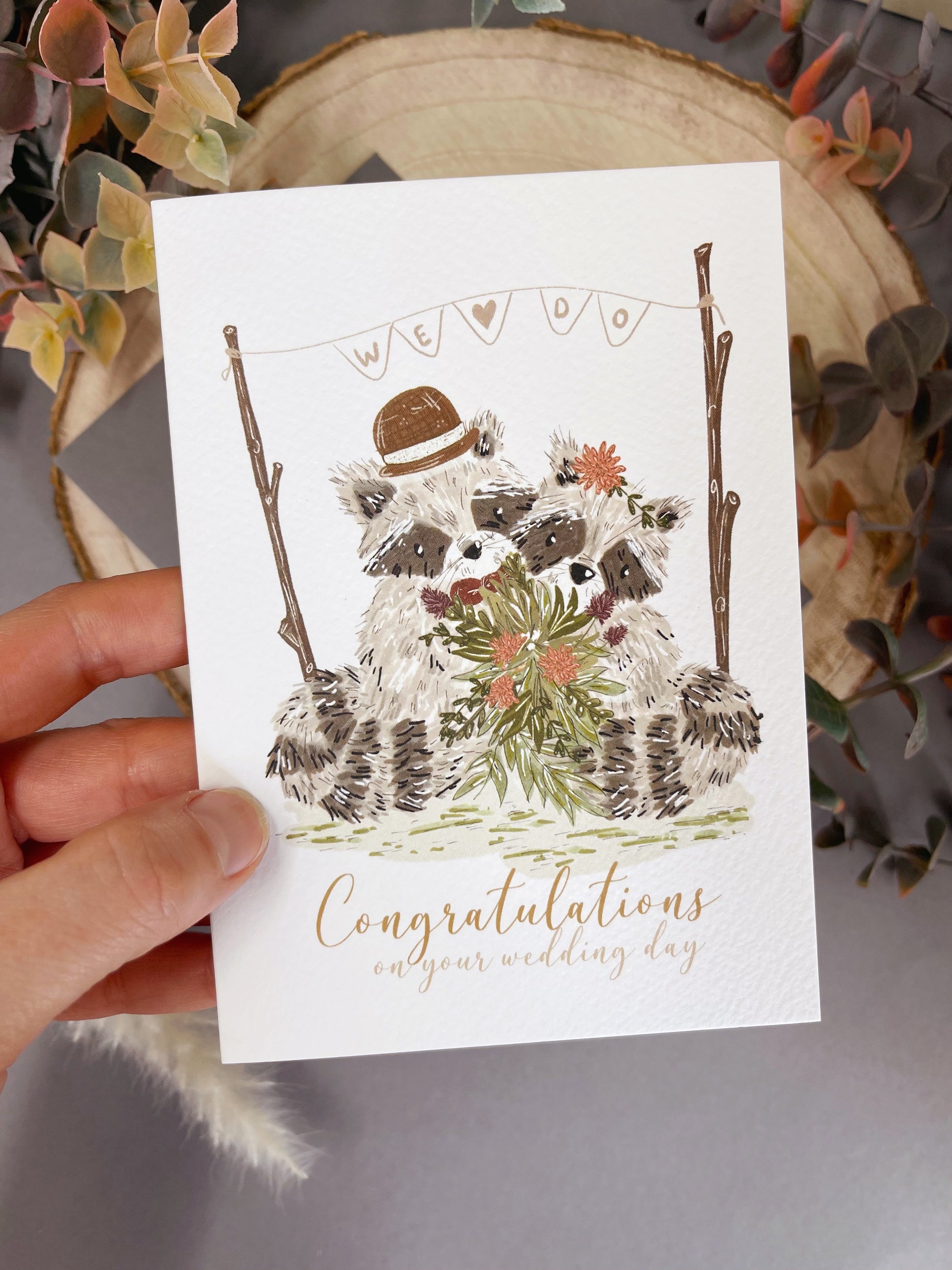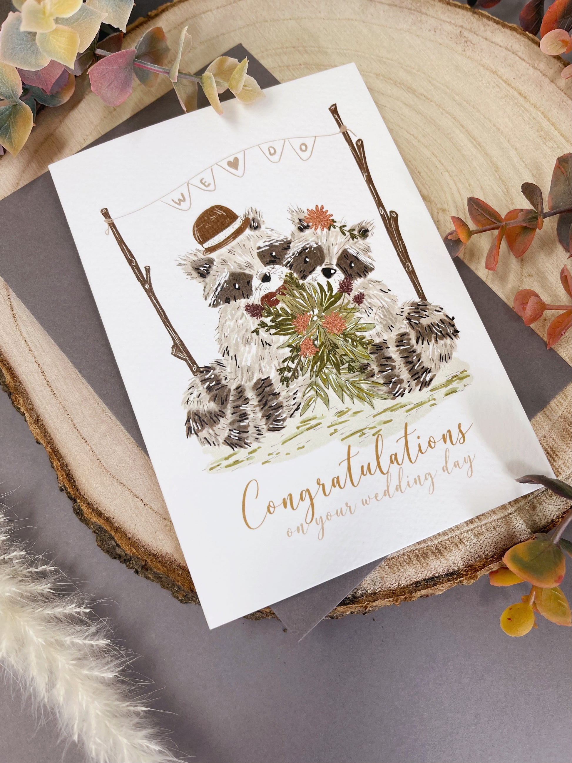 Bohemian Raccoon Wedding Card - Mr & Mrs