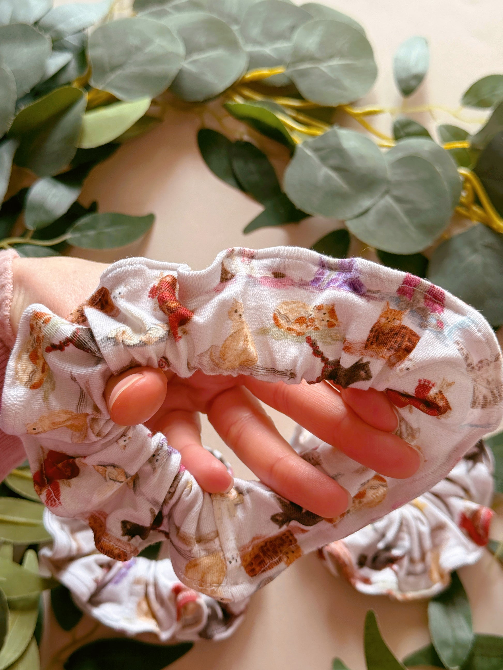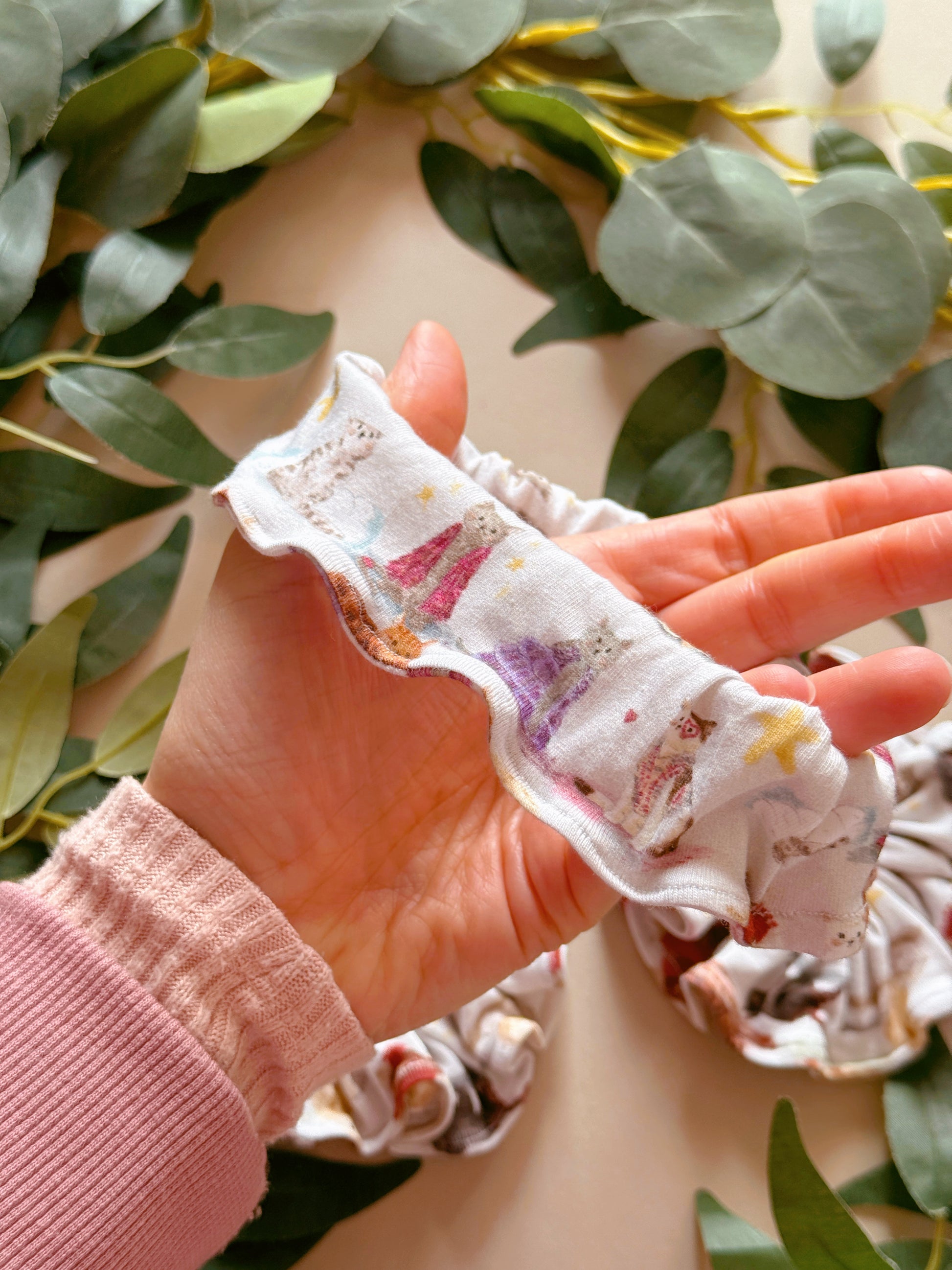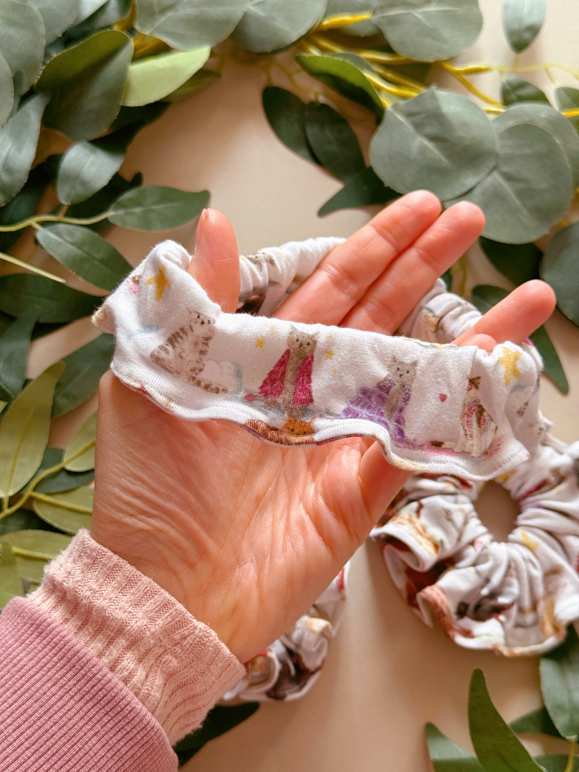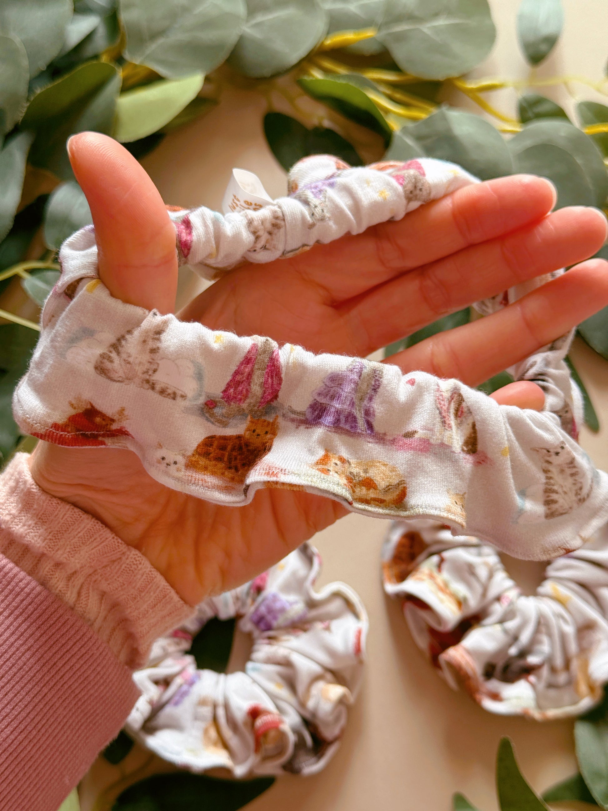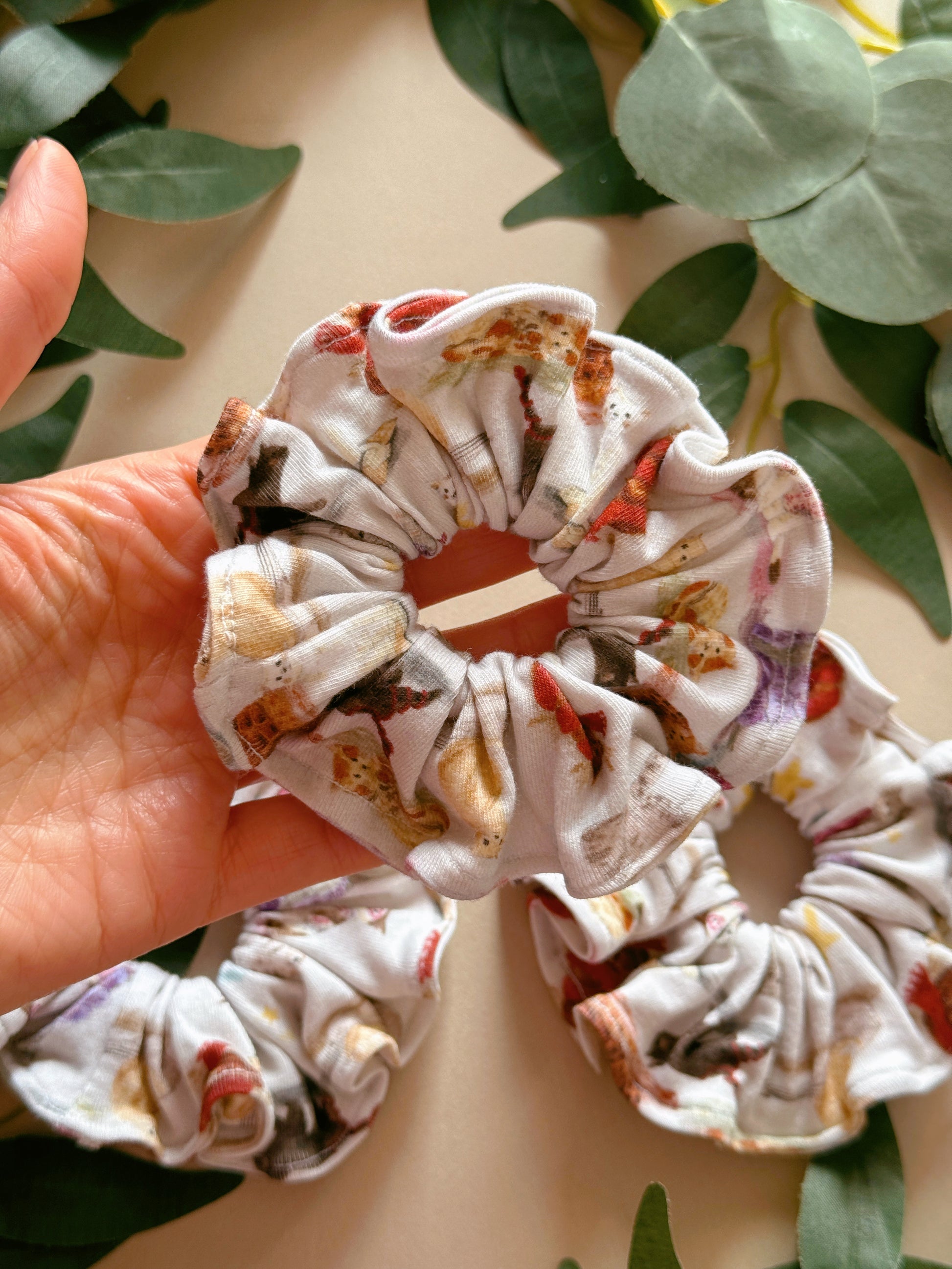Each Scrunchy is hand made from my own designs which are printed on to jersey fabric