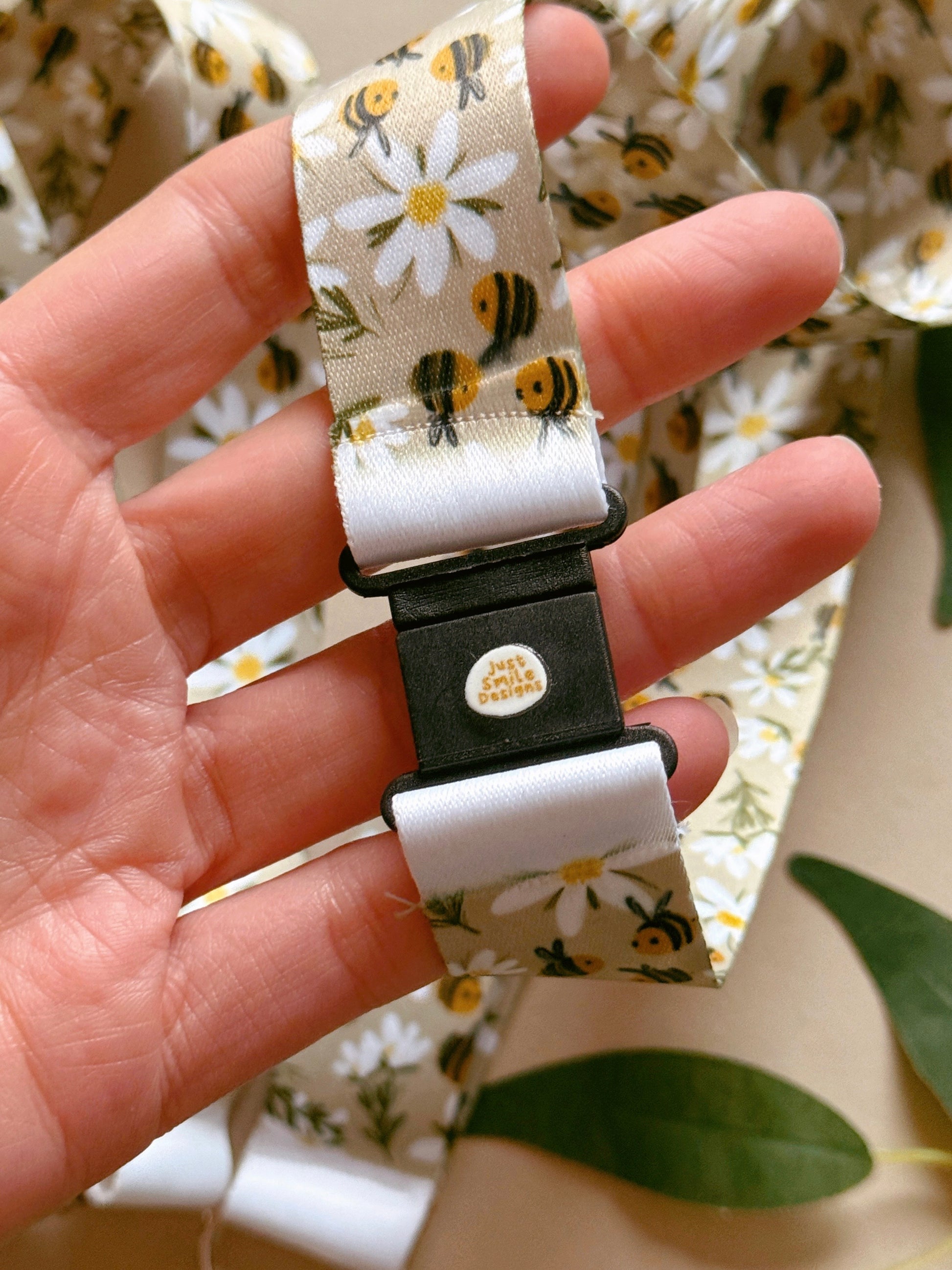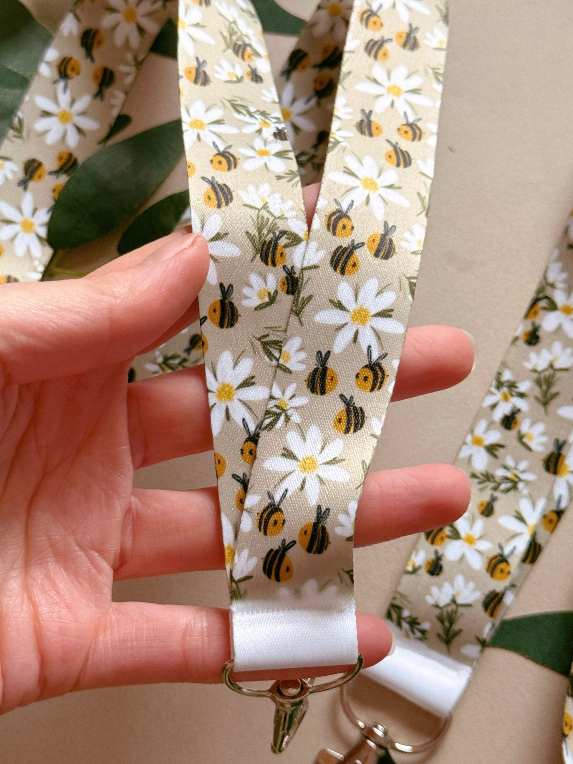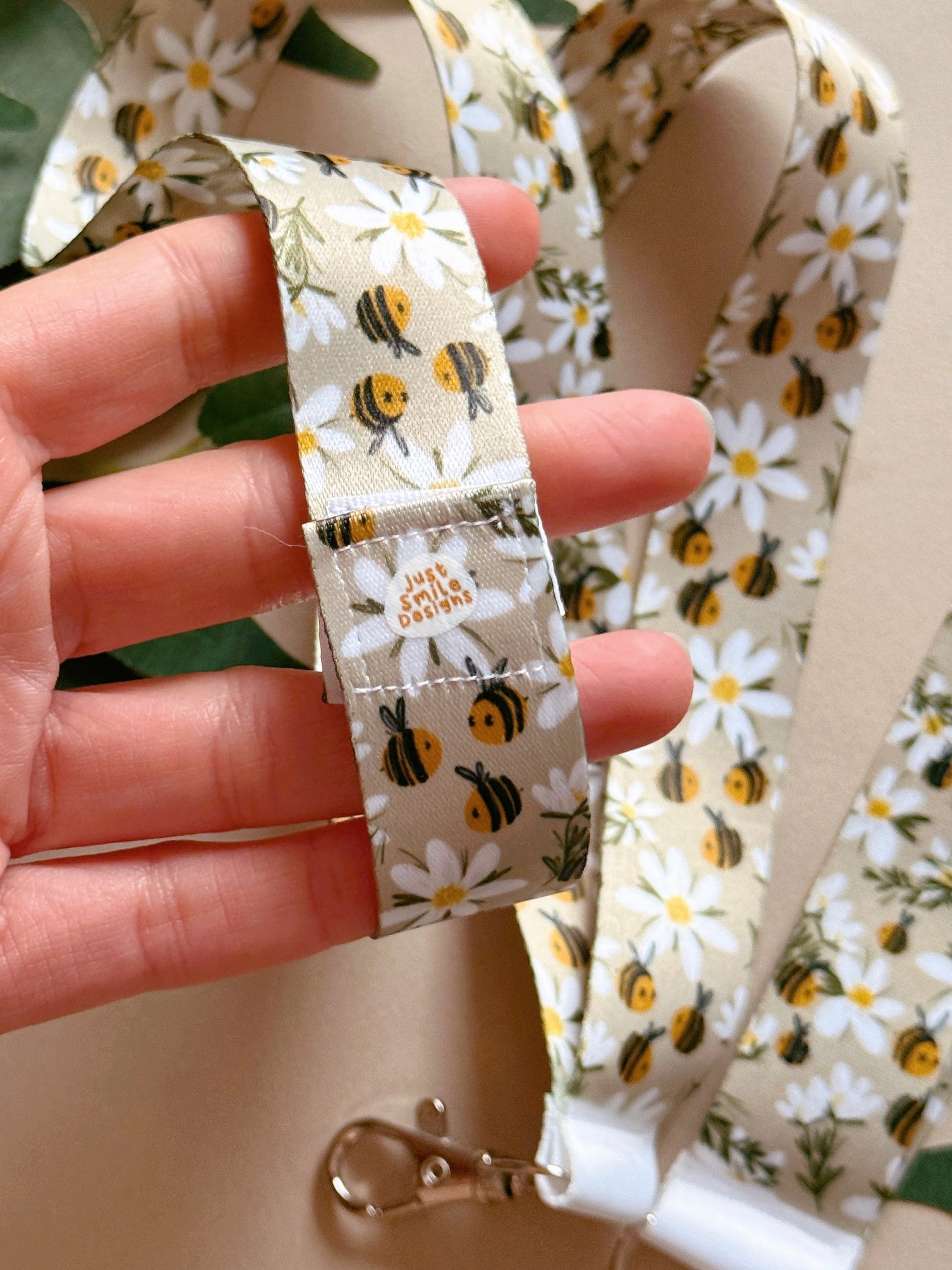 Velcro attachment on the end, lanyard full length is approx 42cm