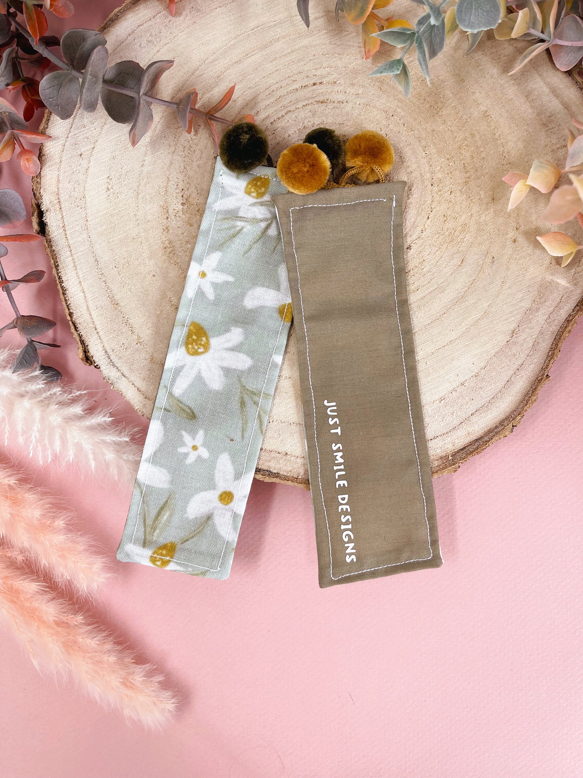 The fabric designs are all mine from original drawings. Each bookmark will differ in pattern as it’s cut from my own material.