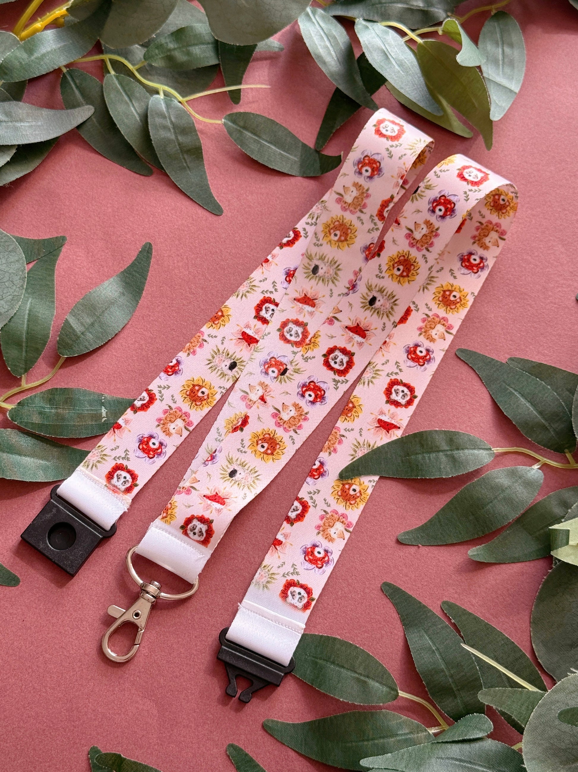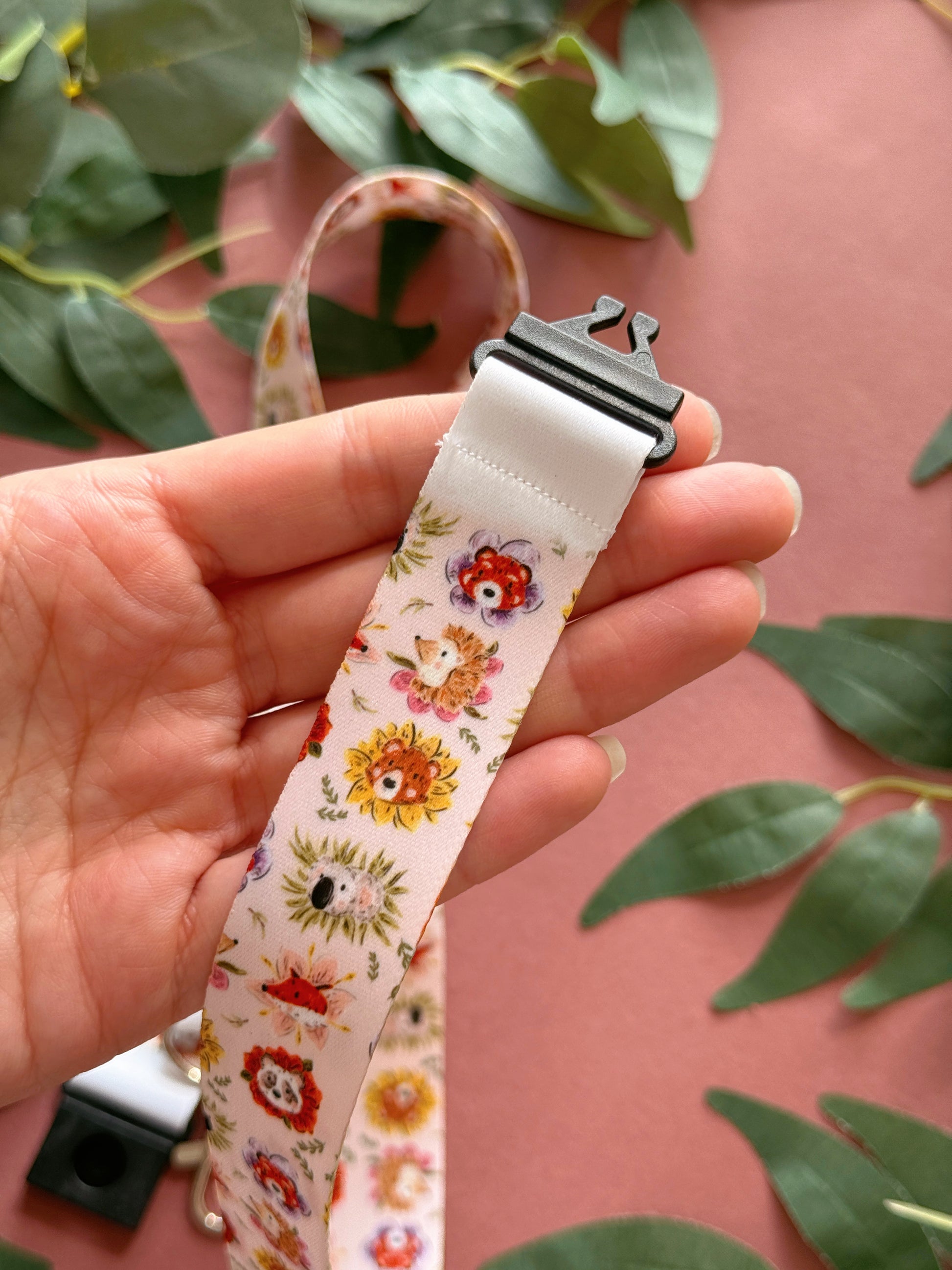 Velcro attachment on the end, lanyard full length is approx 42cm