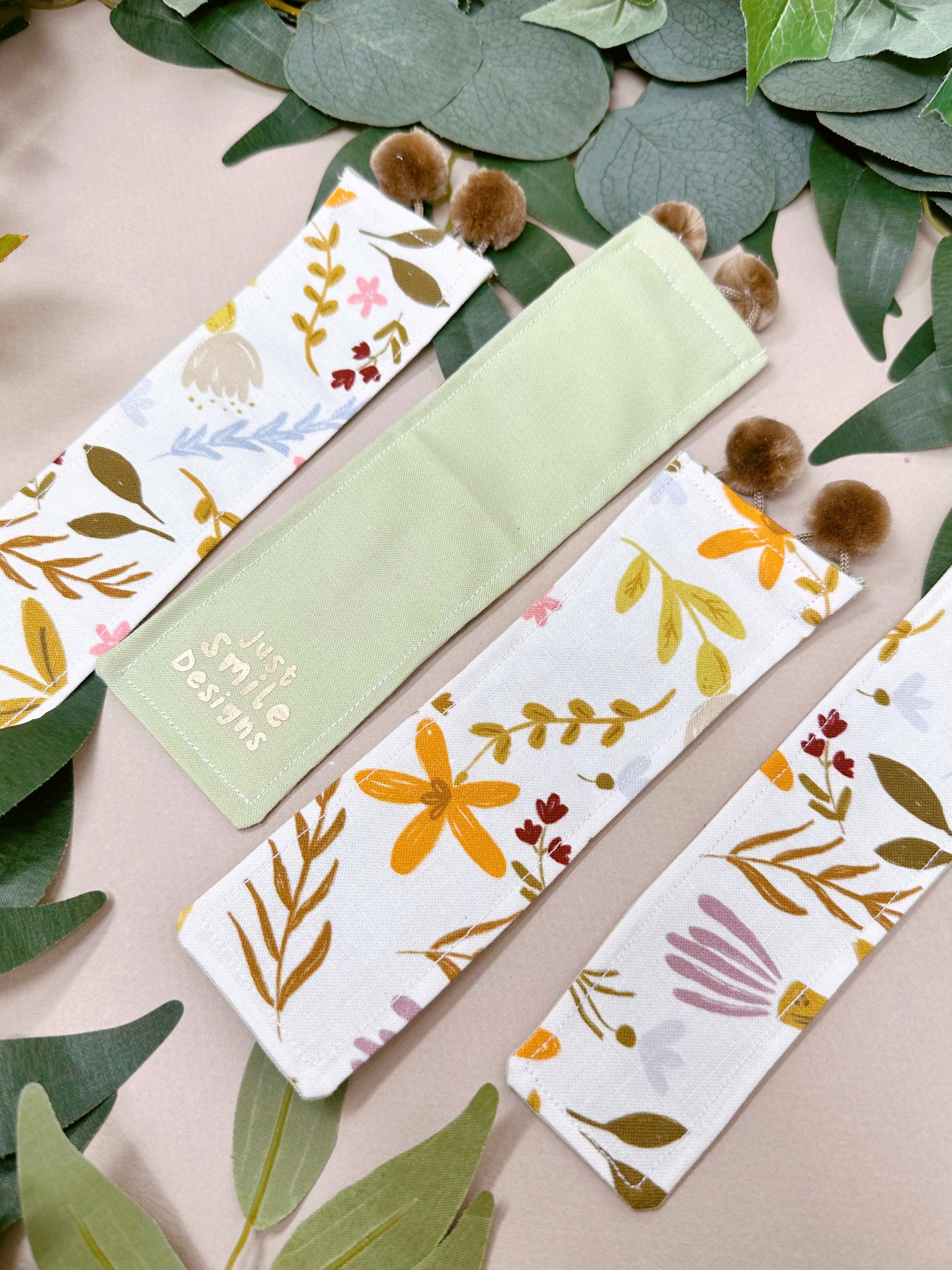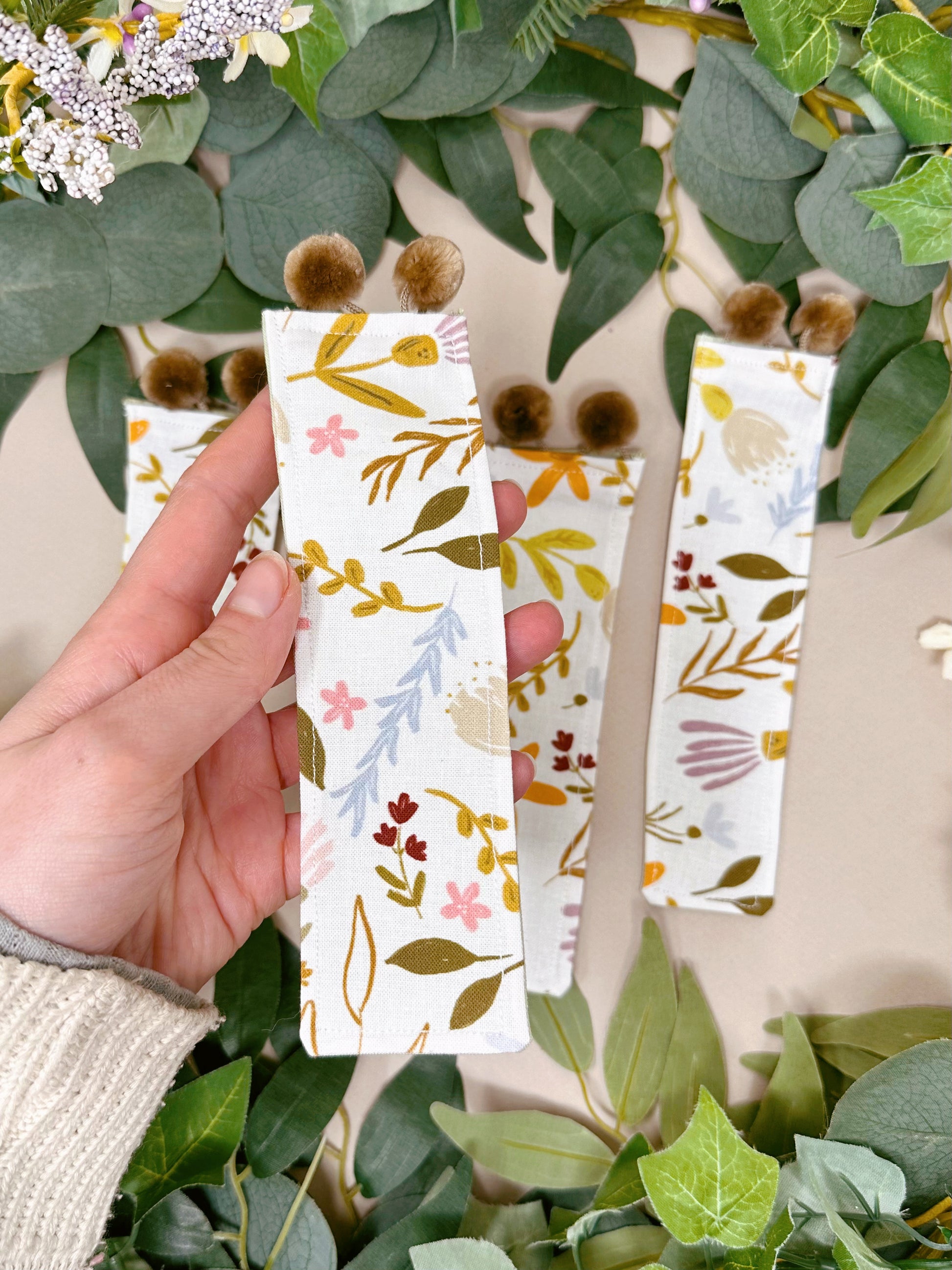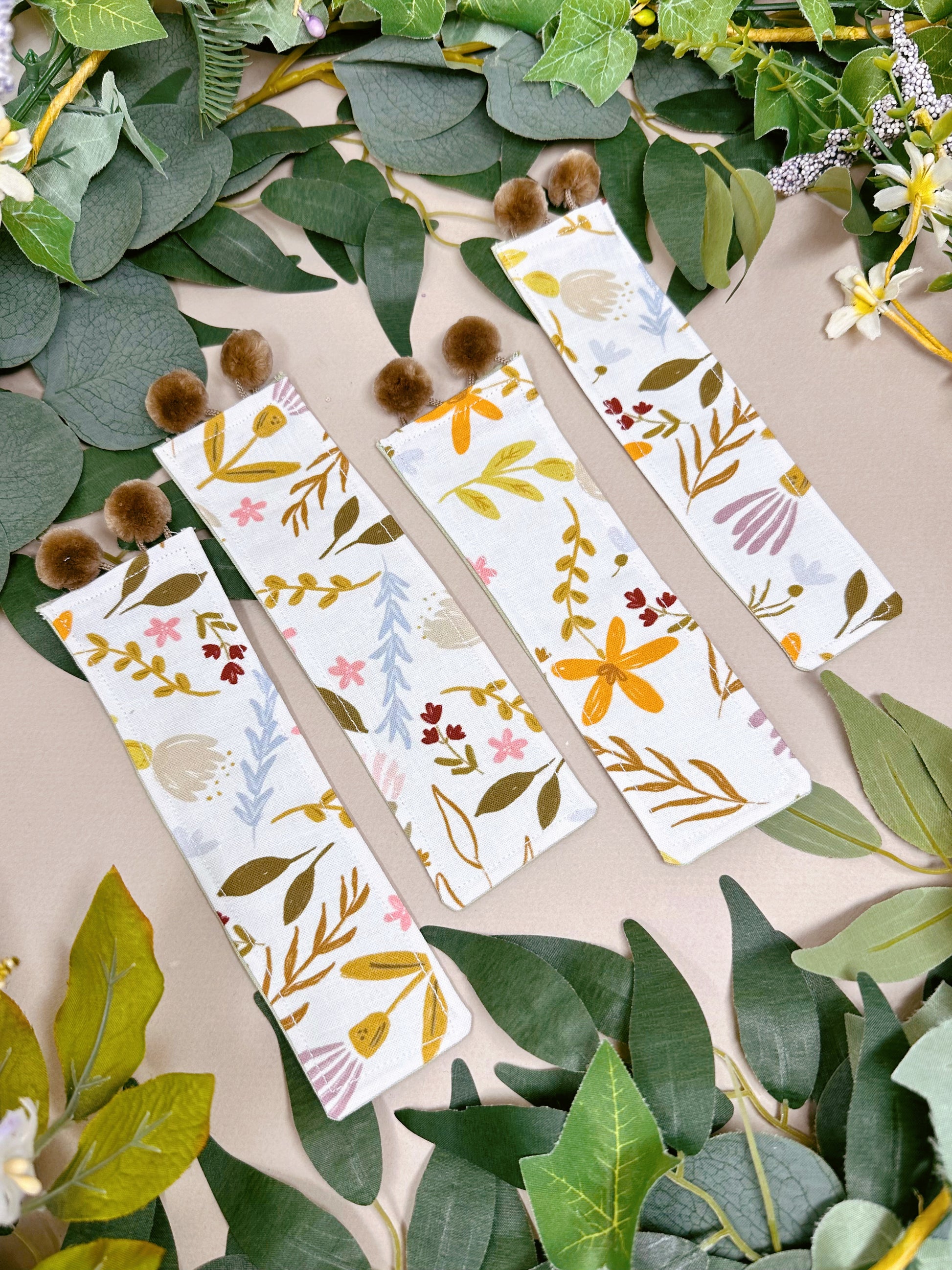 The fabric designs are all mine from original drawings. Each bookmark will differ in pattern as it’s cut from my own material.