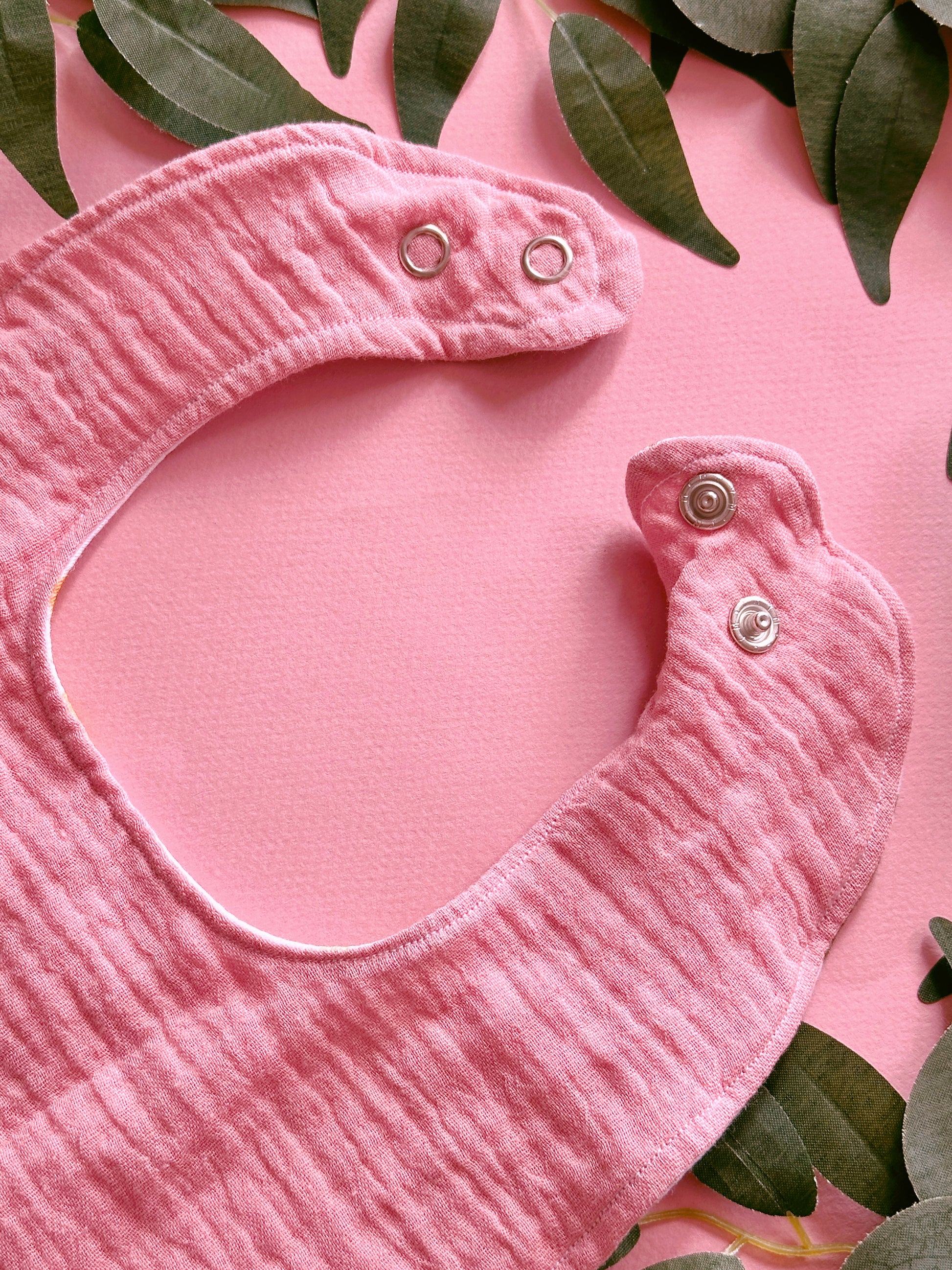 The fabric designs are all mine from original drawings. Each bib will differ in pattern as it’s cut from my floral material.