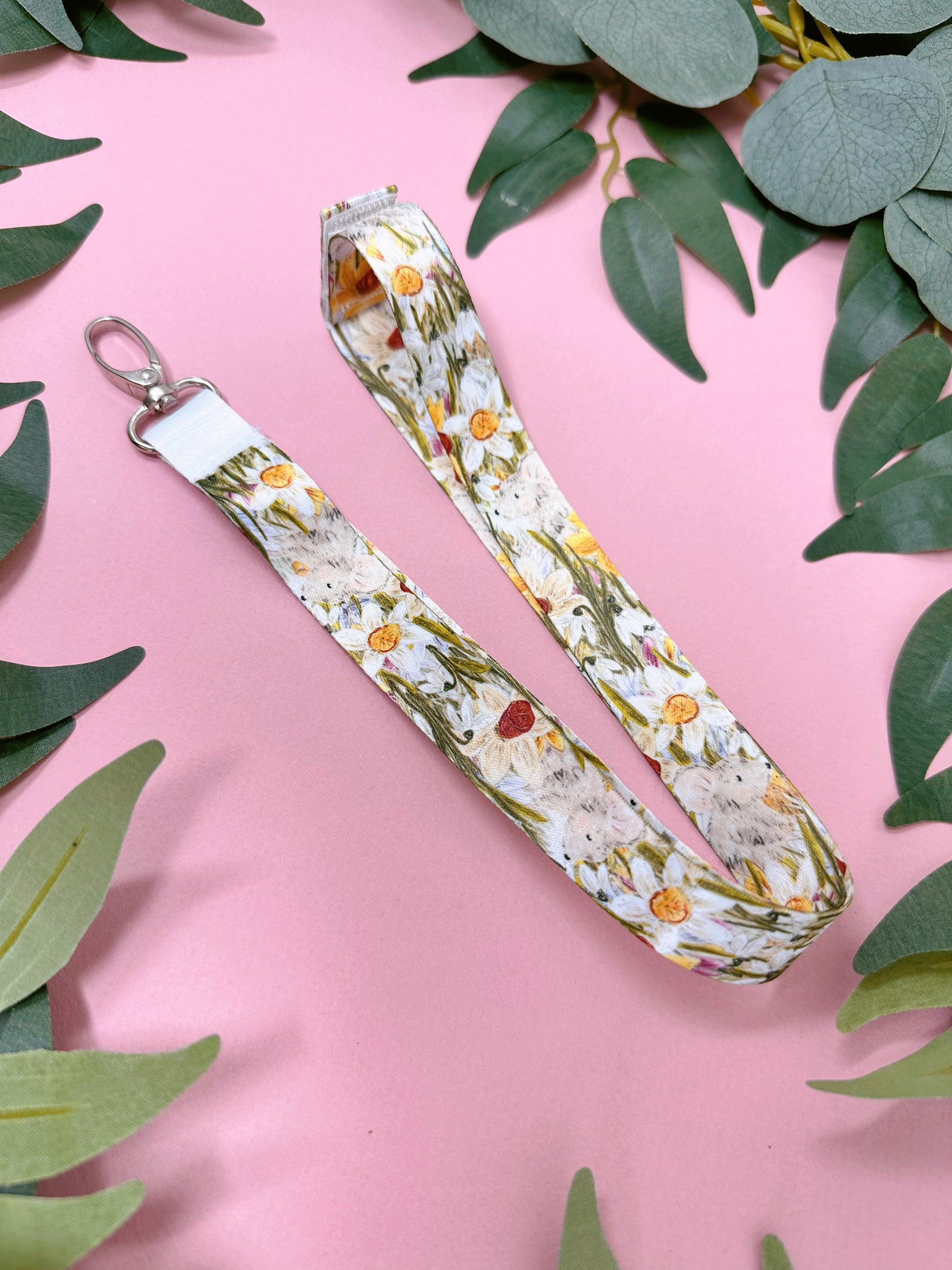Velcro attachment on the end, lanyard full length is approx 42cm