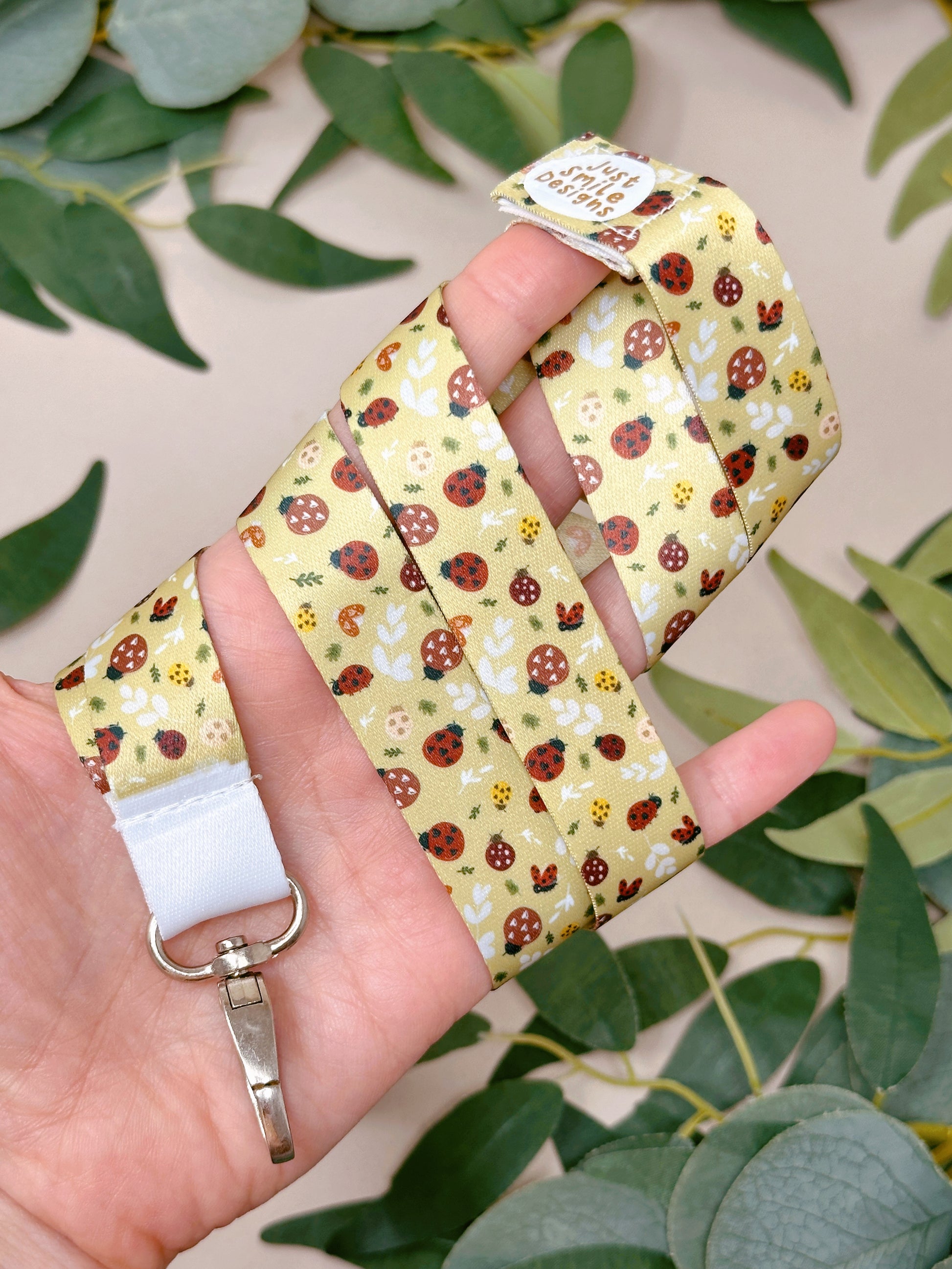 Velcro attachment on the end, lanyard full length is approx 42cm