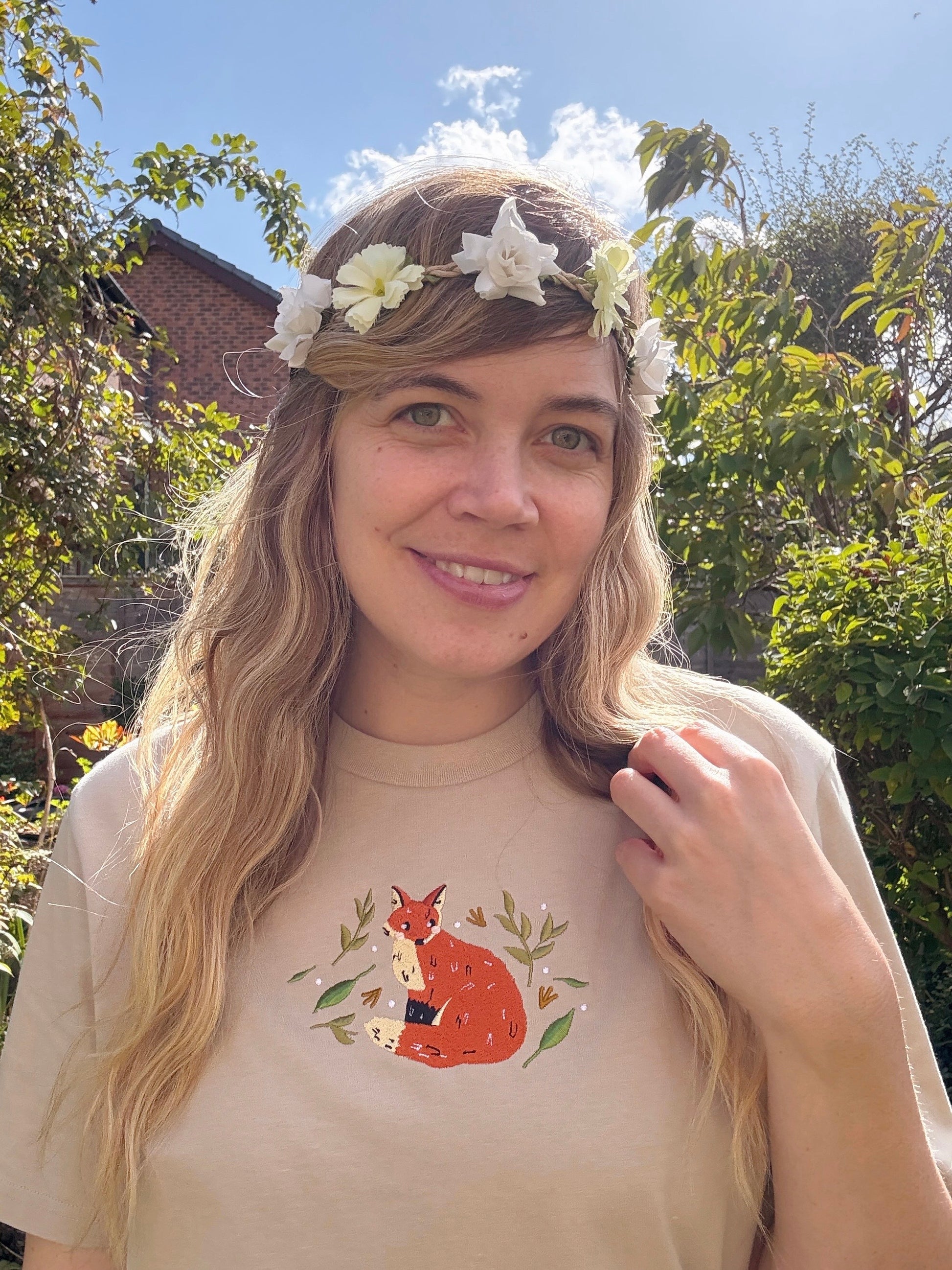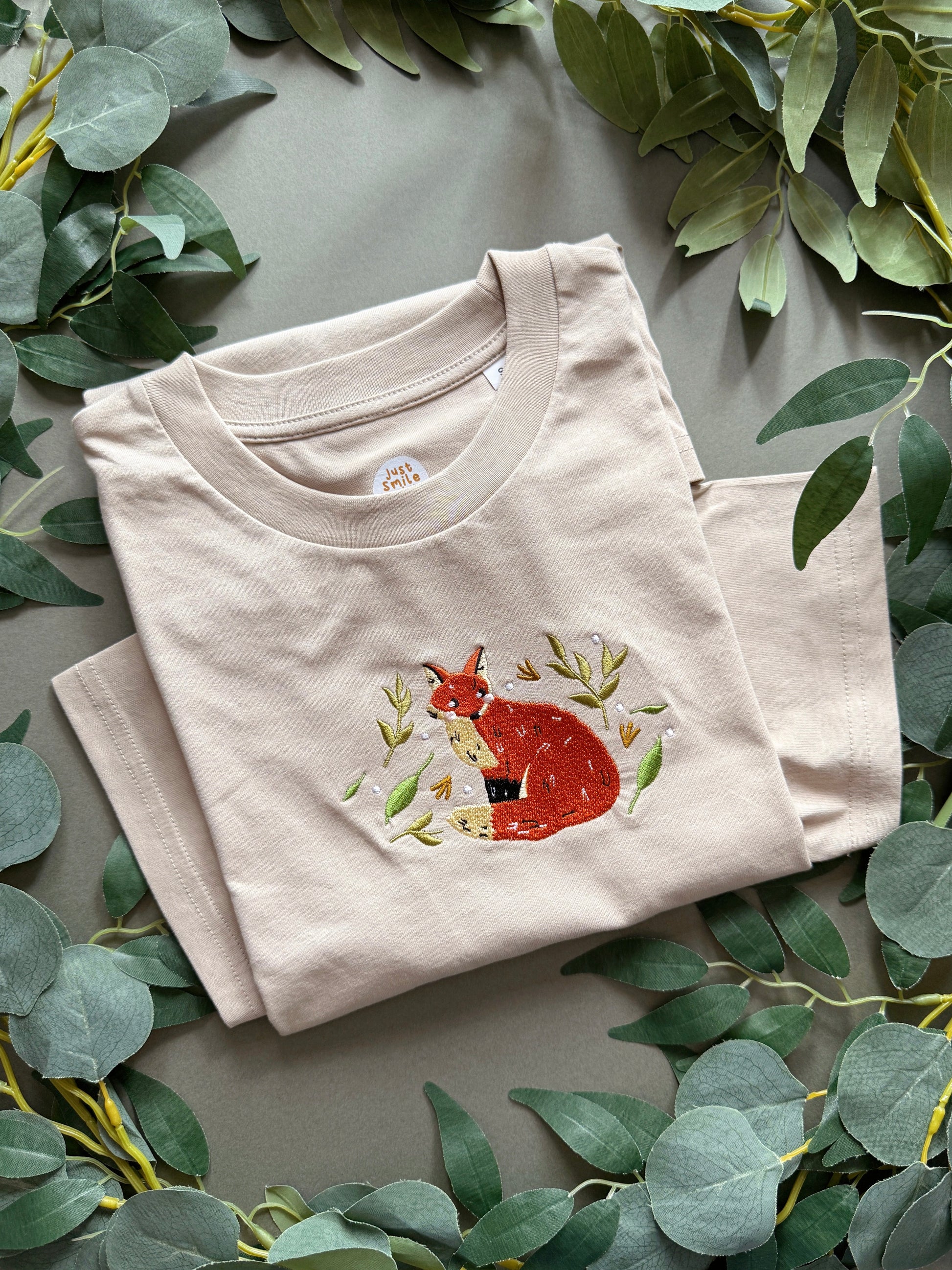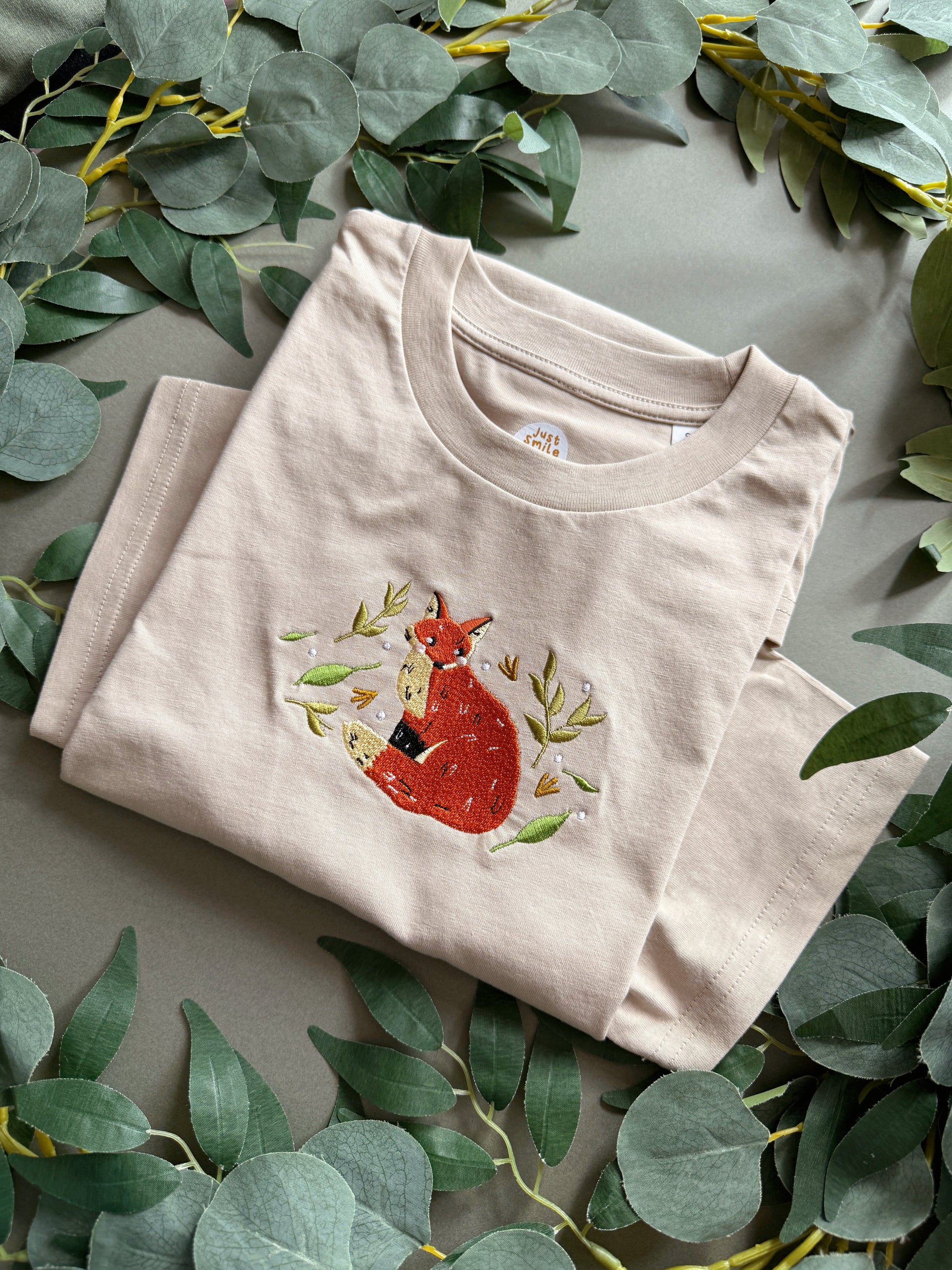 Leafy Fox Embroidered T-Shirt - Organic Cotton