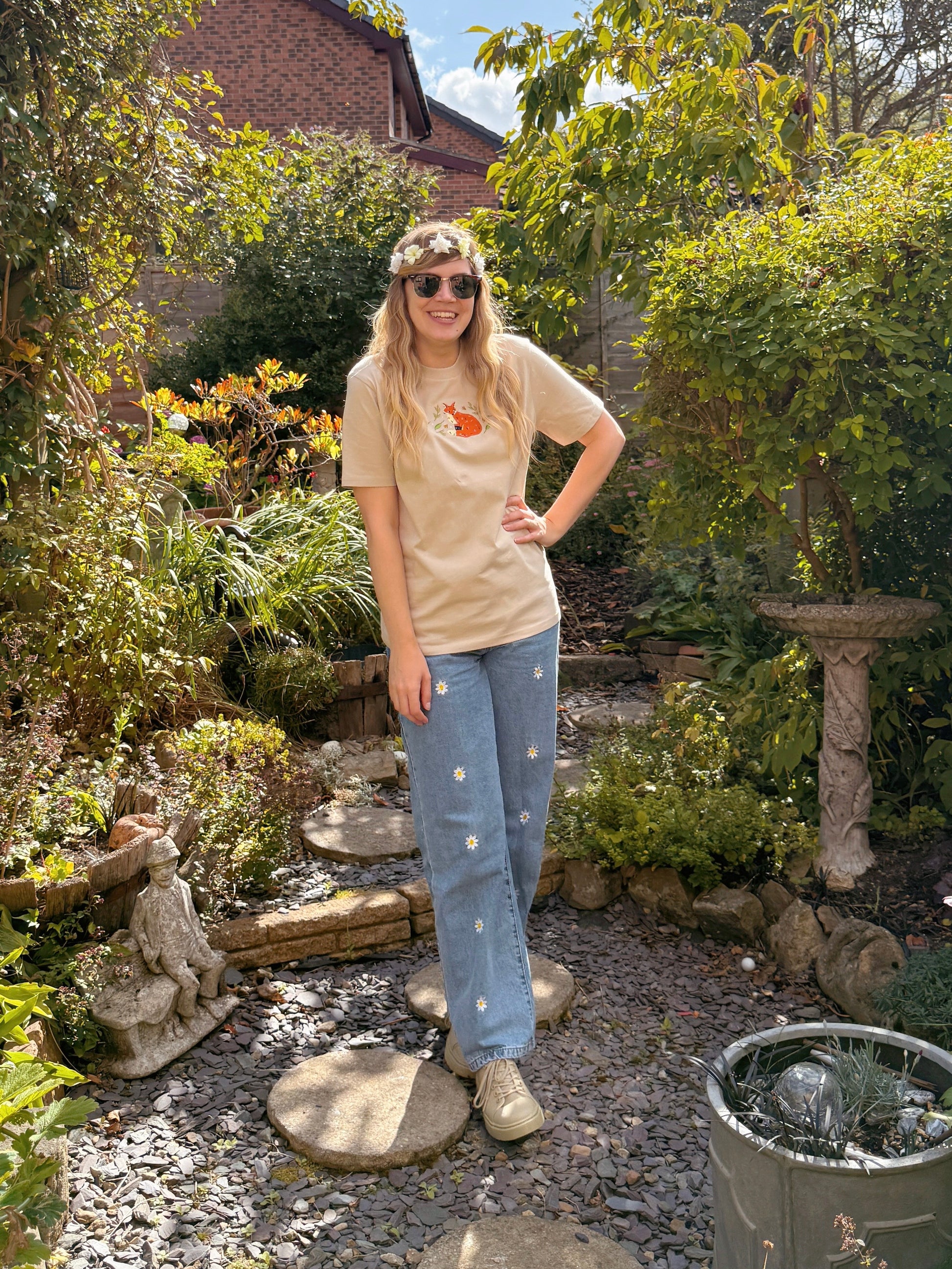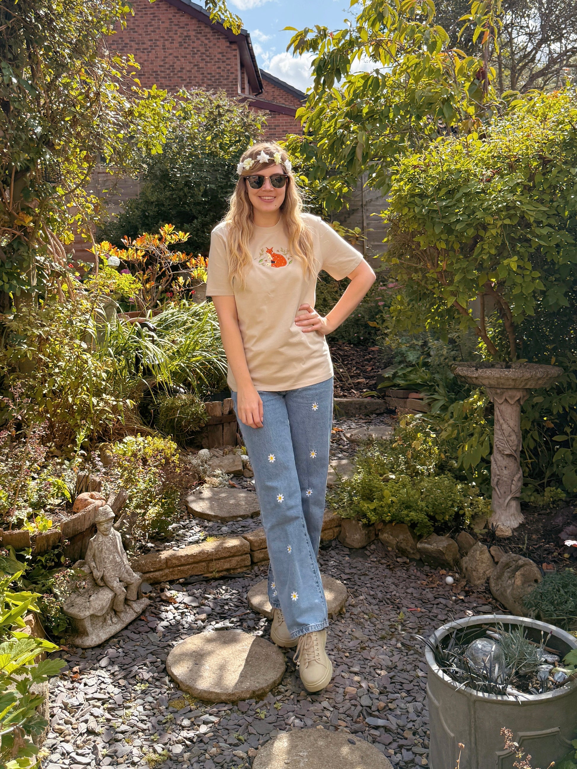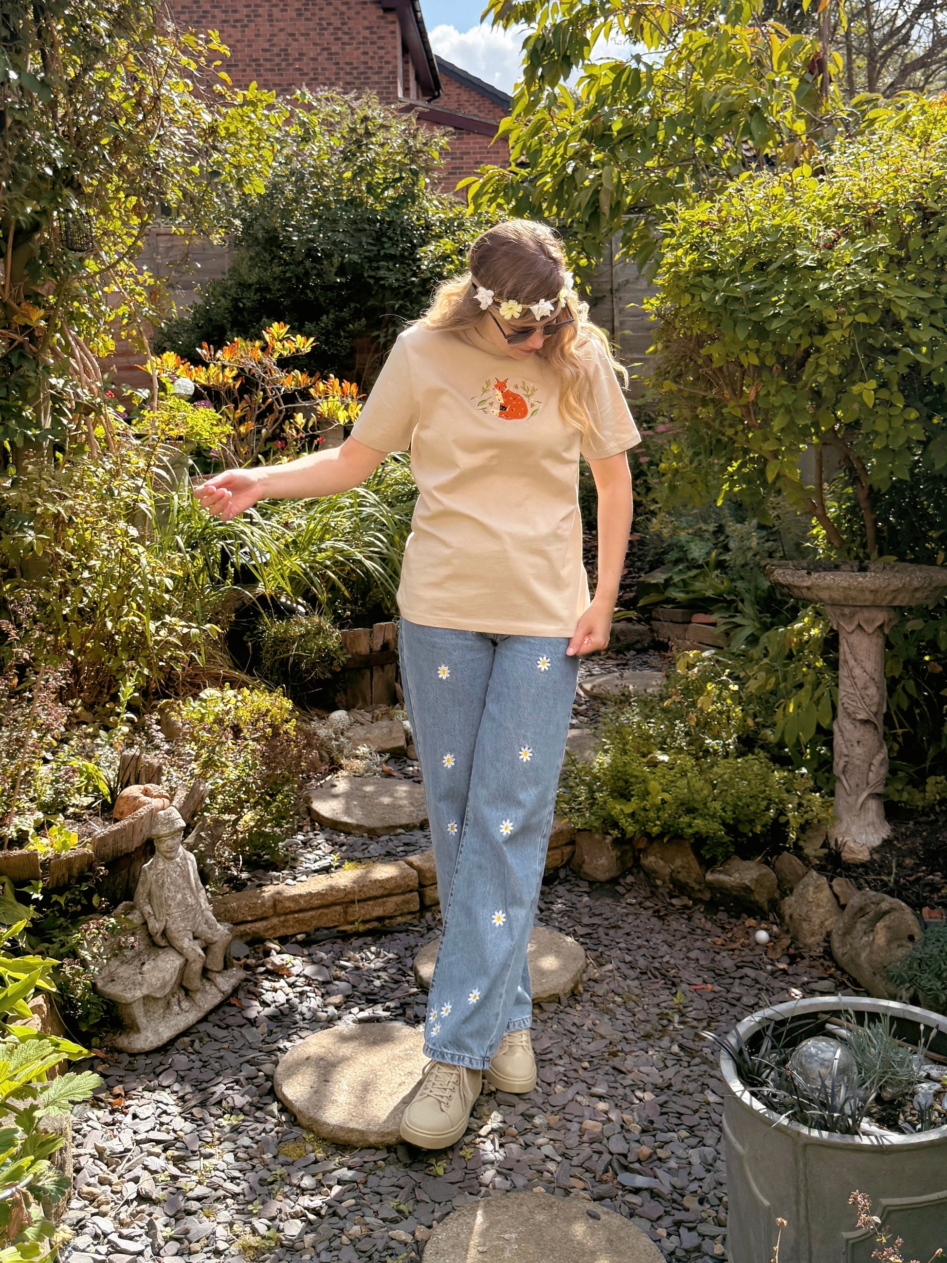 Leafy Fox Embroidered T-Shirt - Organic Cotton