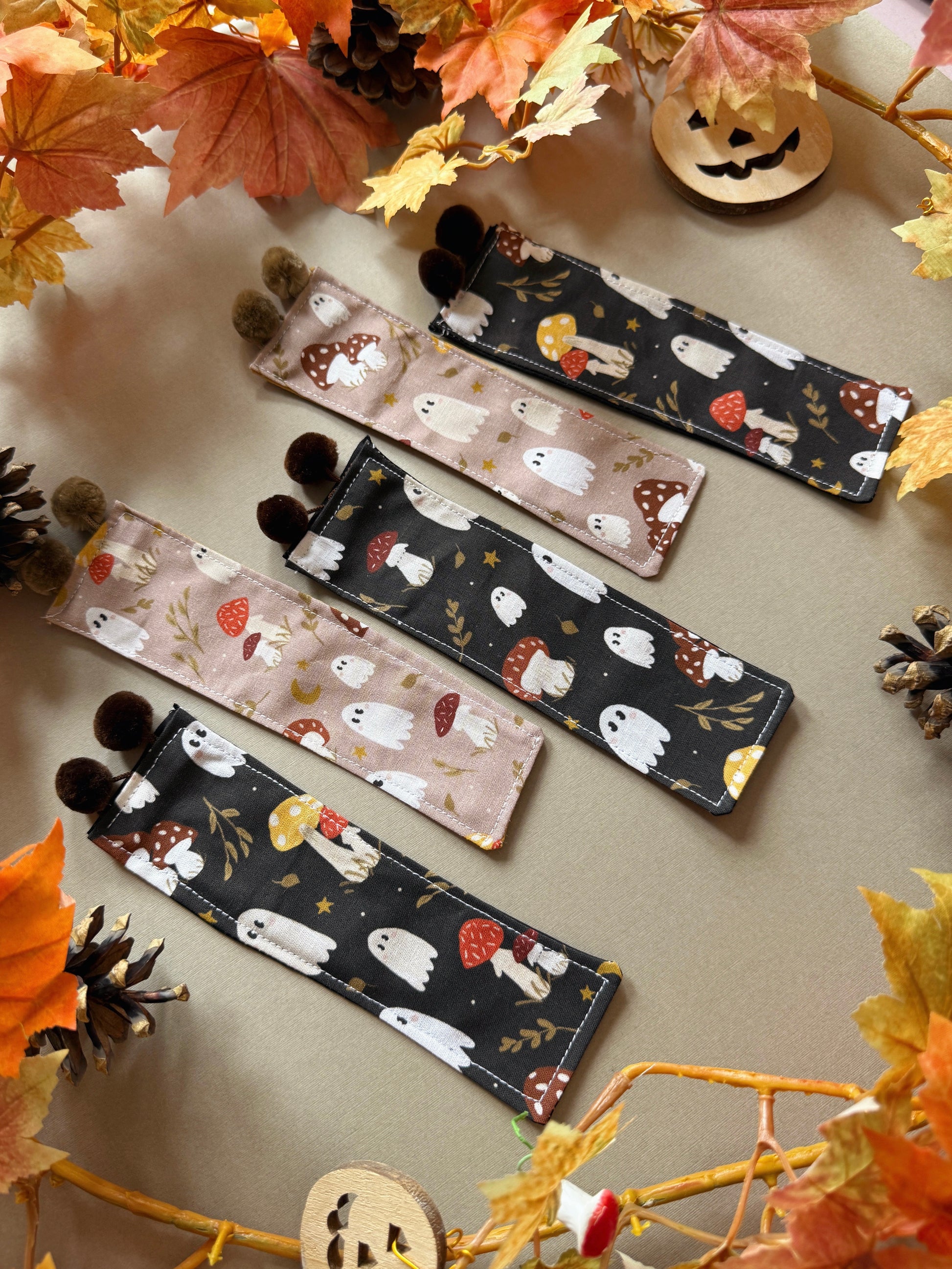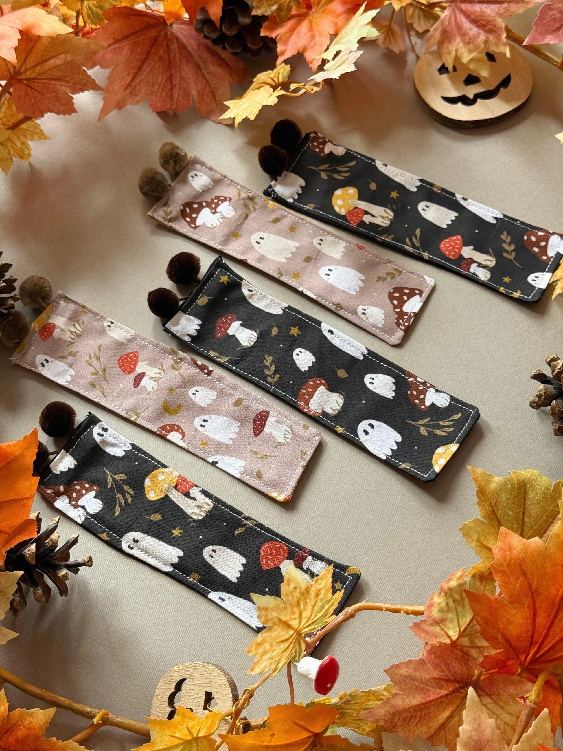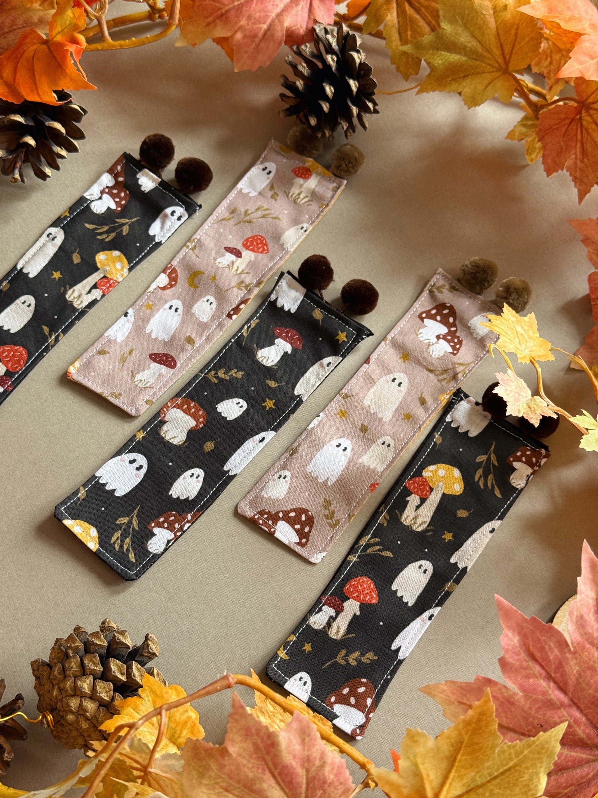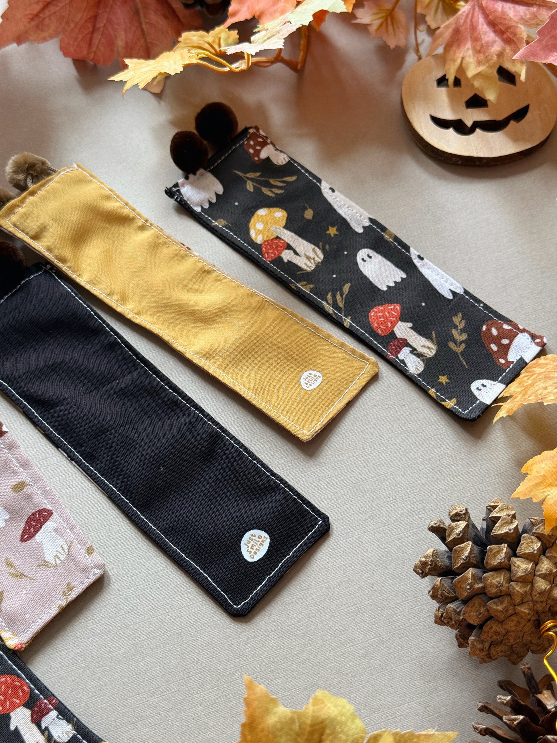 The fabric designs are all mine from original drawings. Each bookmark will differ in pattern as it’s cut from my own material.