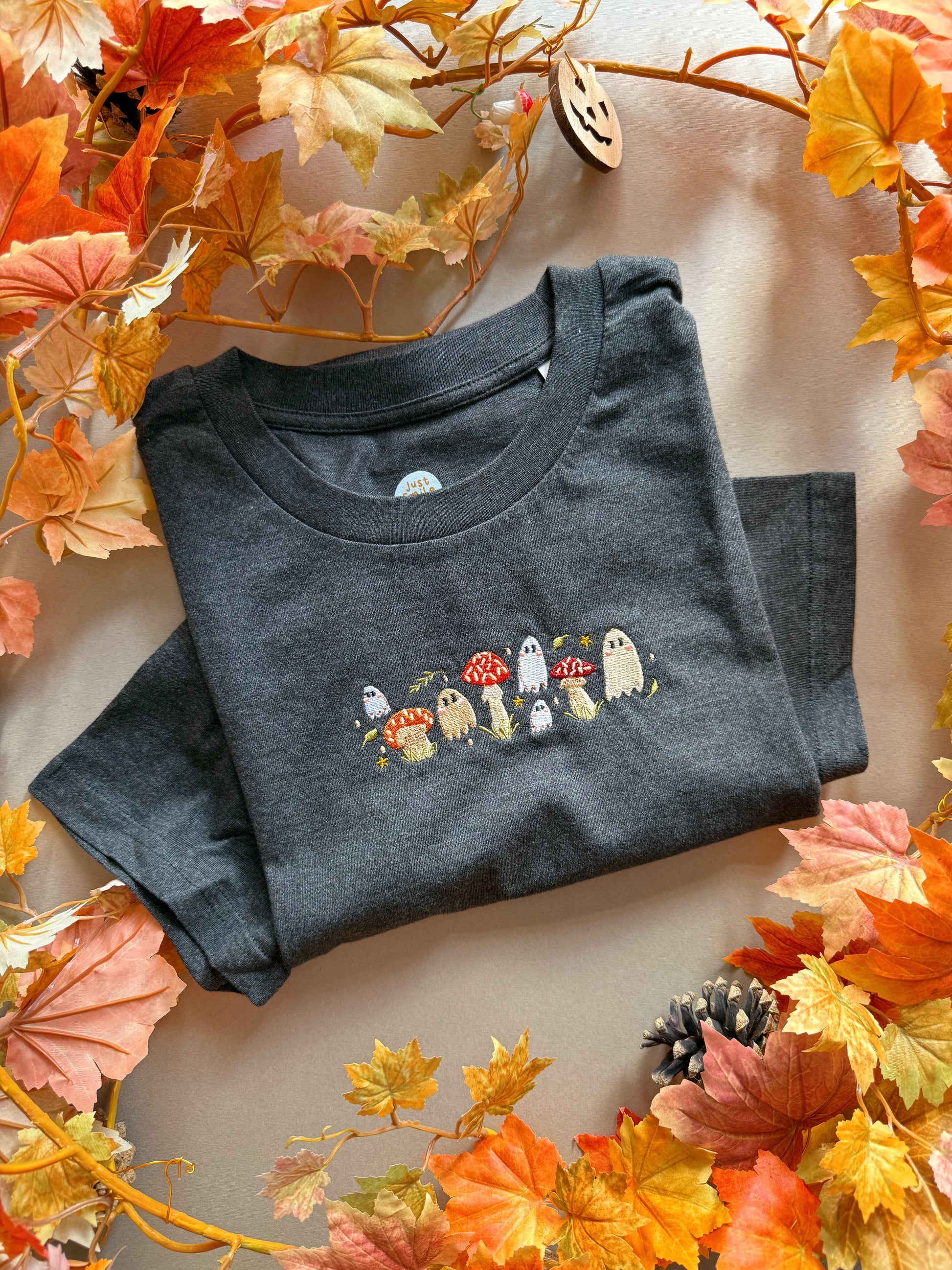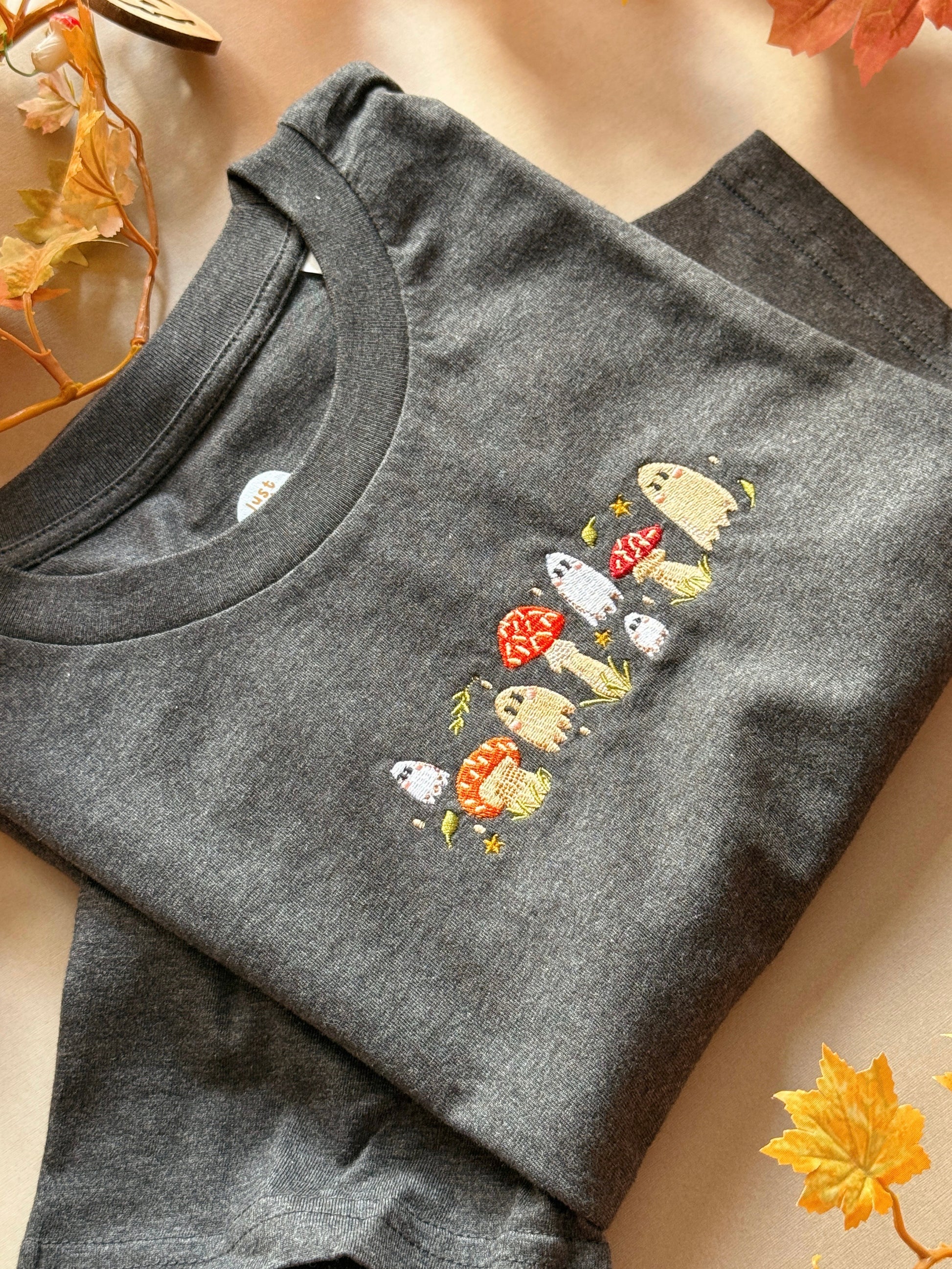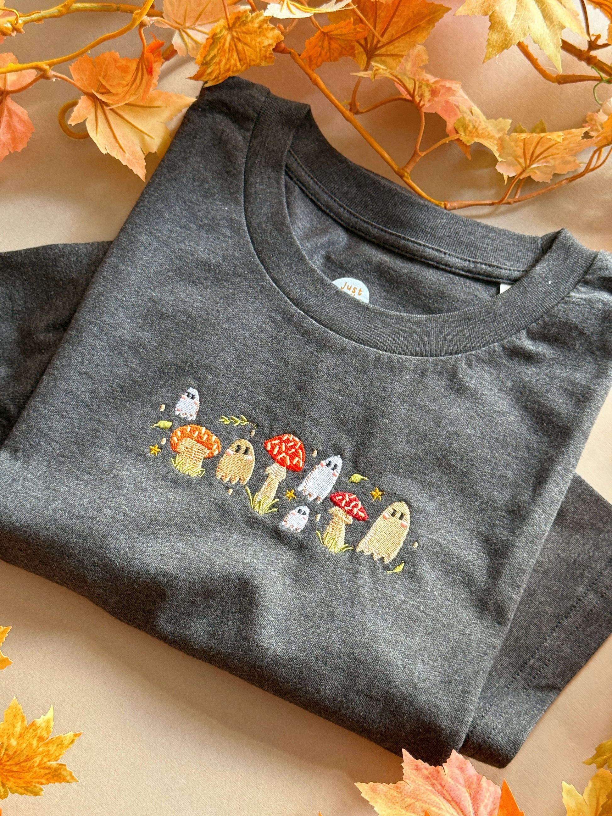Mushroom Ghost Embroidered T-Shirt - Organic Cotton