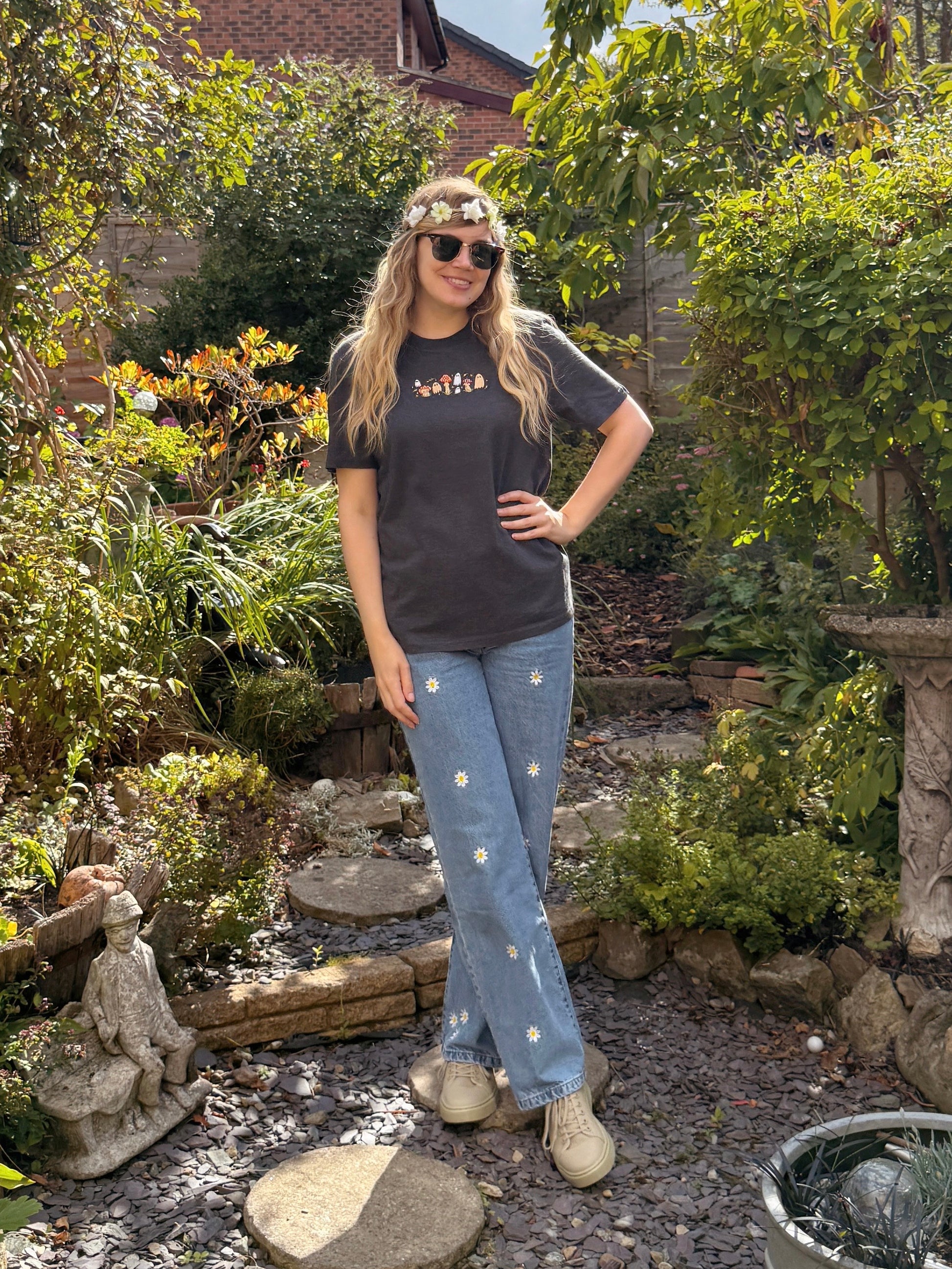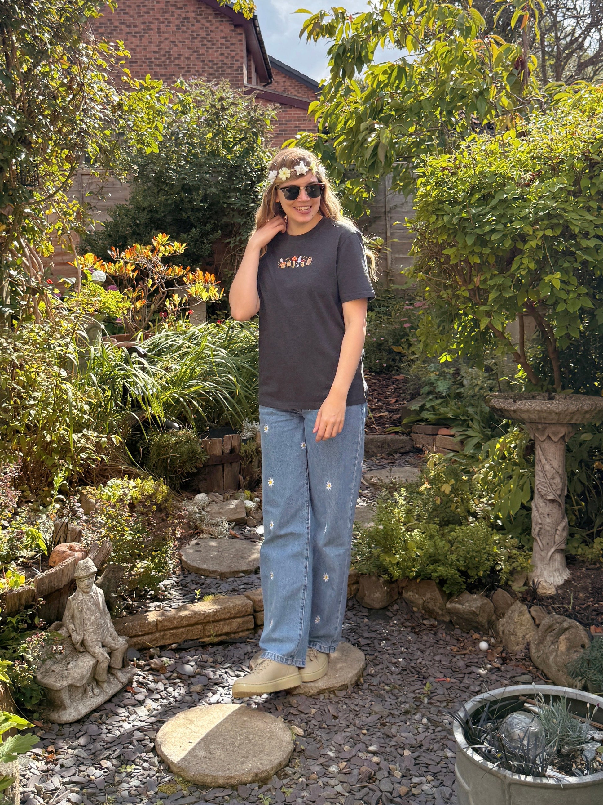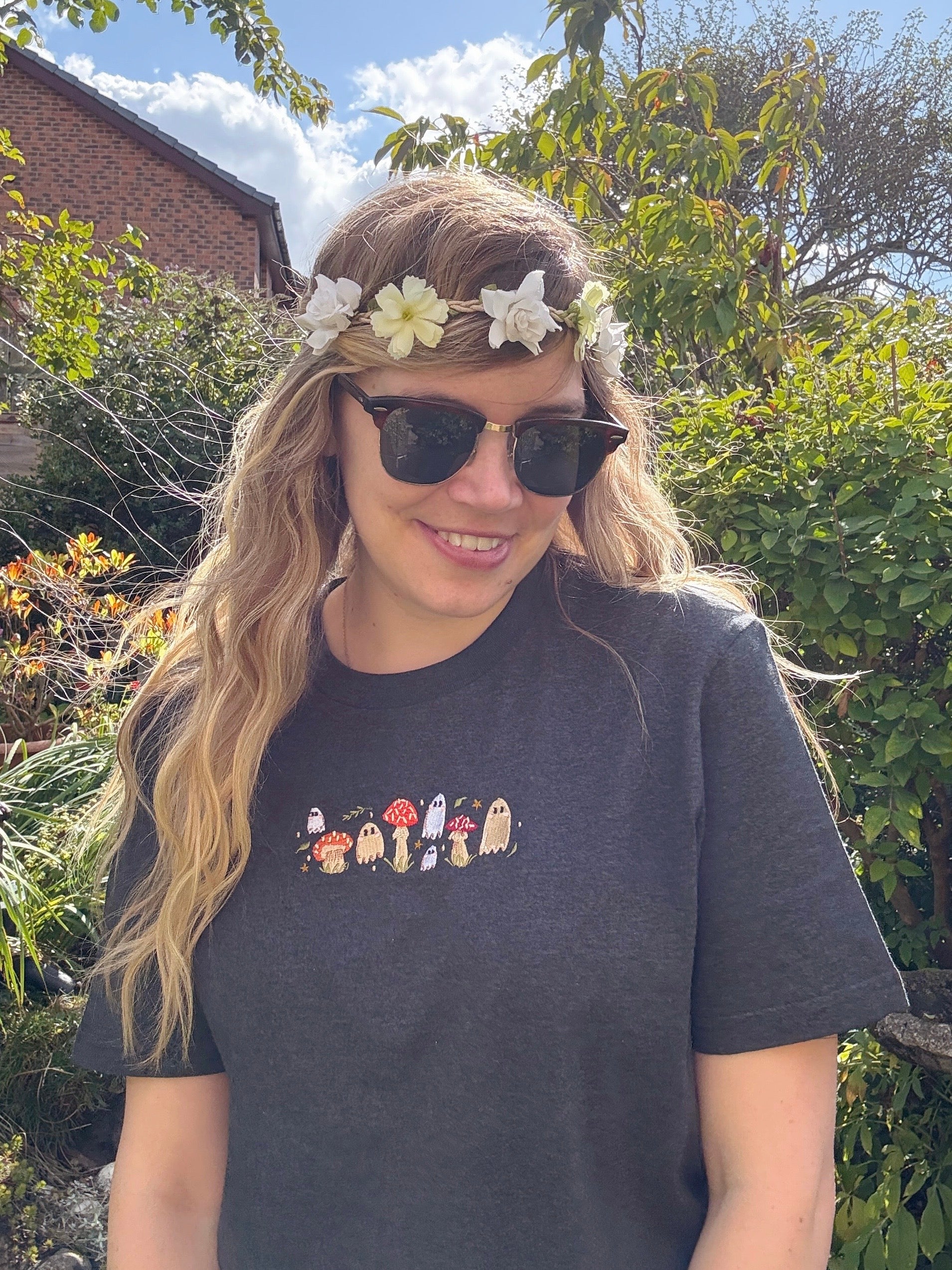 Mushroom Ghost Embroidered T-Shirt - Organic Cotton