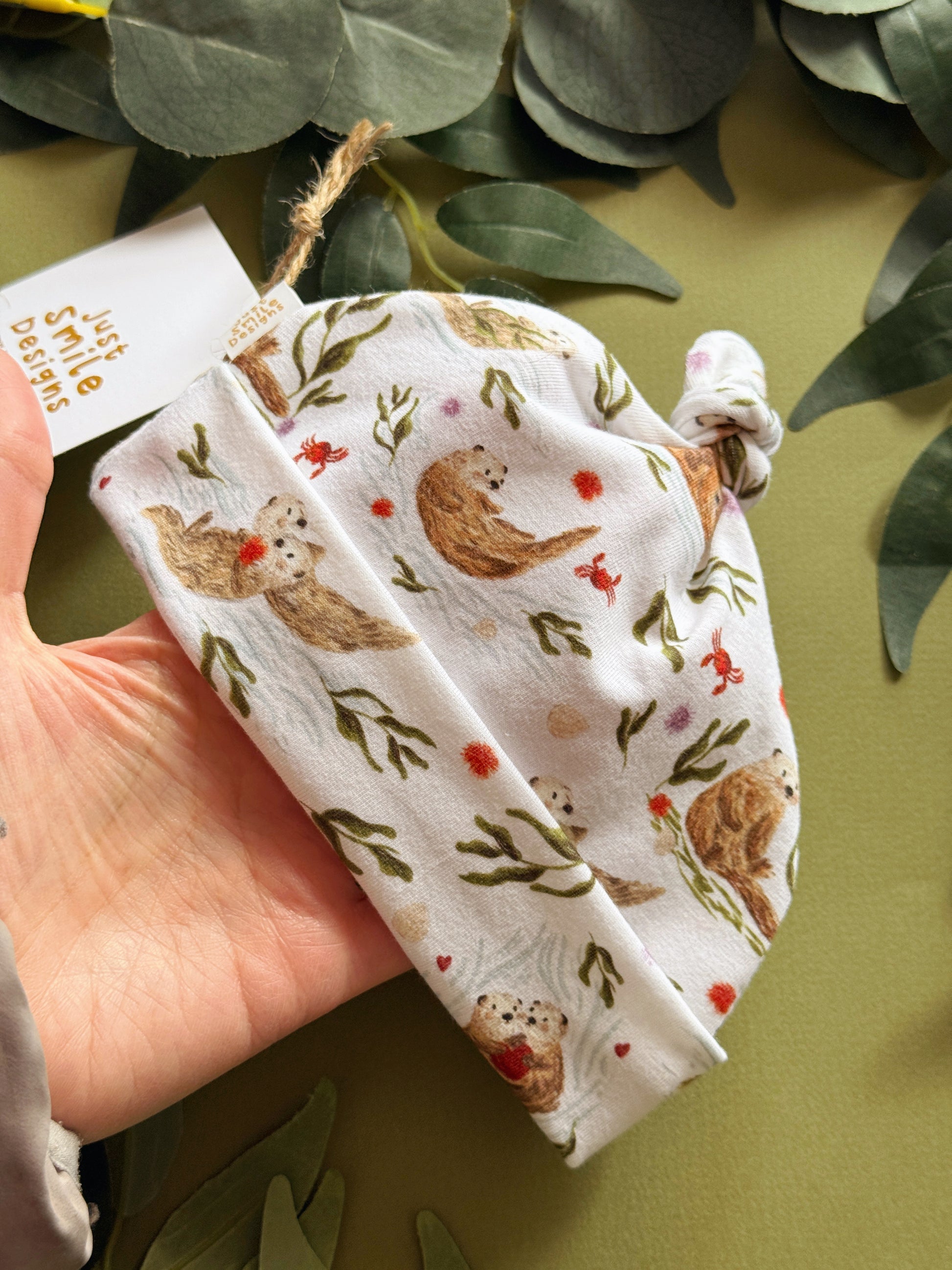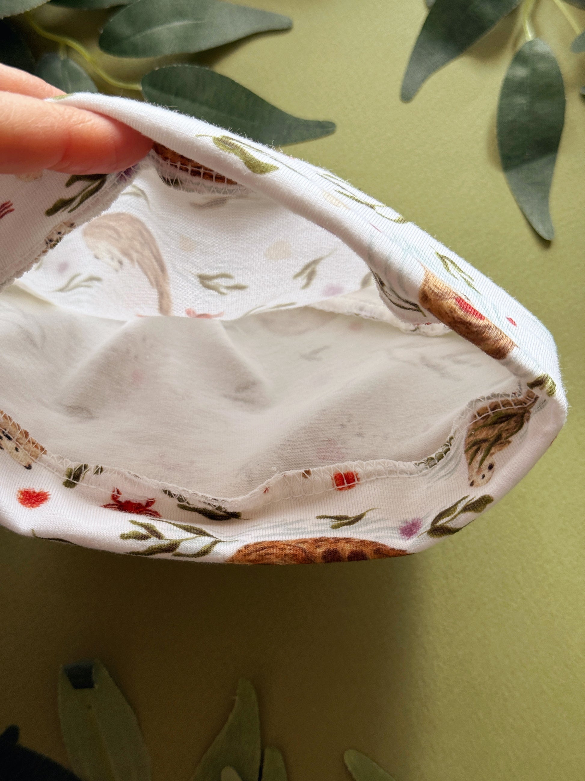 The fabric is soft and stretchy GOTS Certified Cotton Jersey. The fabric is printed with GOTS organic pigment ink