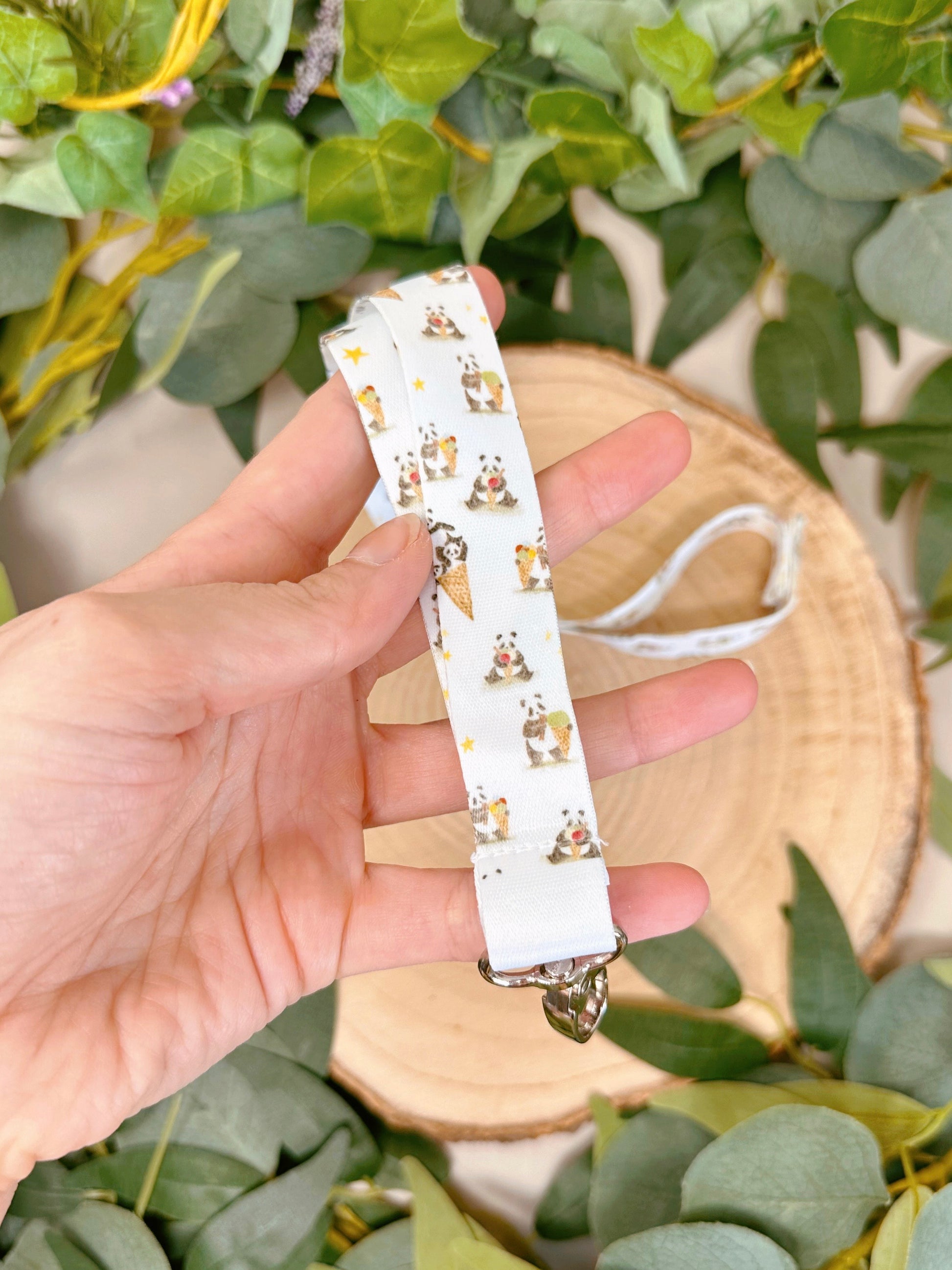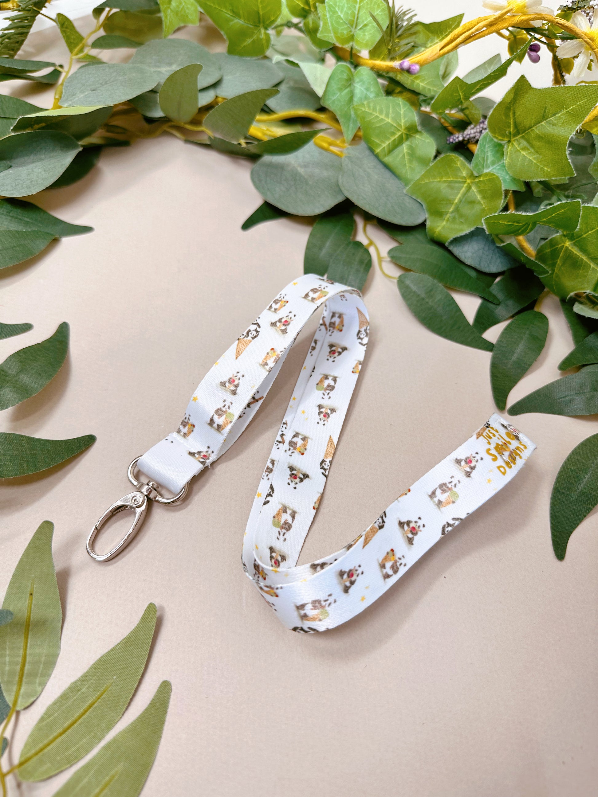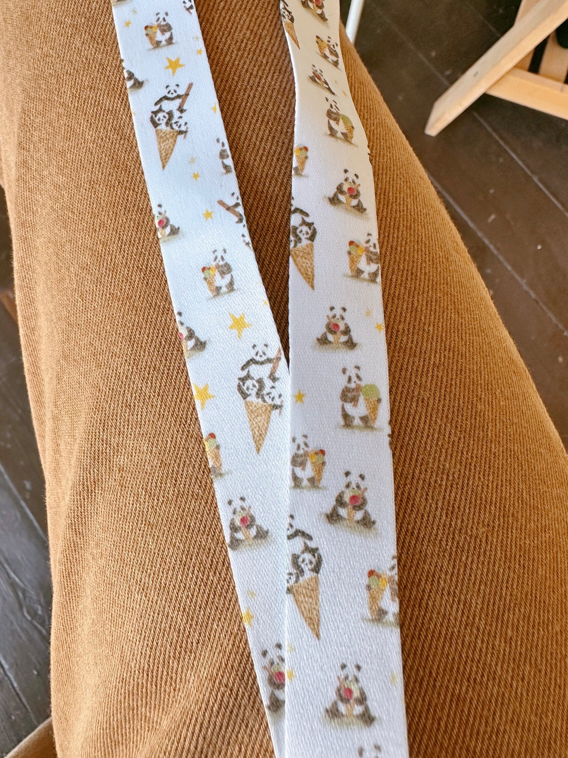 Velcro attachment on the end, lanyard full length is approx 42cm