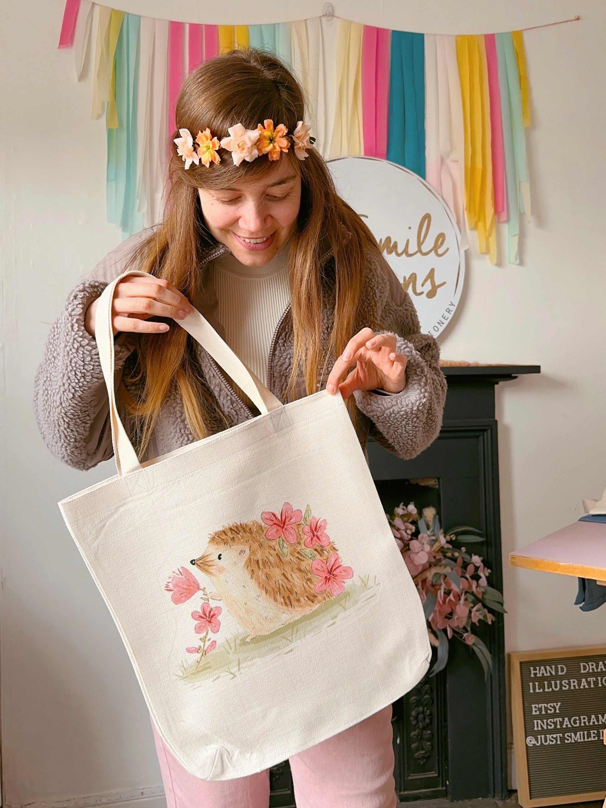 A perfect reusable tote bag to fold up into your pocket or handbag for those shopping days. An environmental alternative to plastic shopping bags!