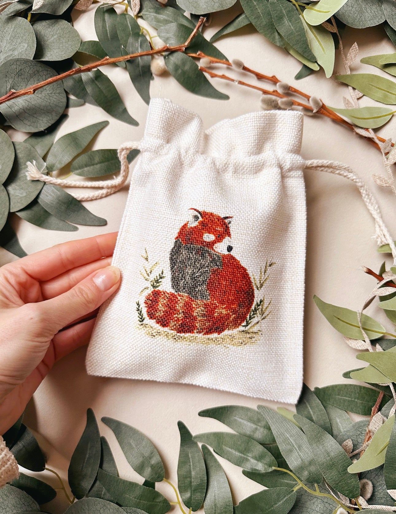 Red Panda Drawstring Bag