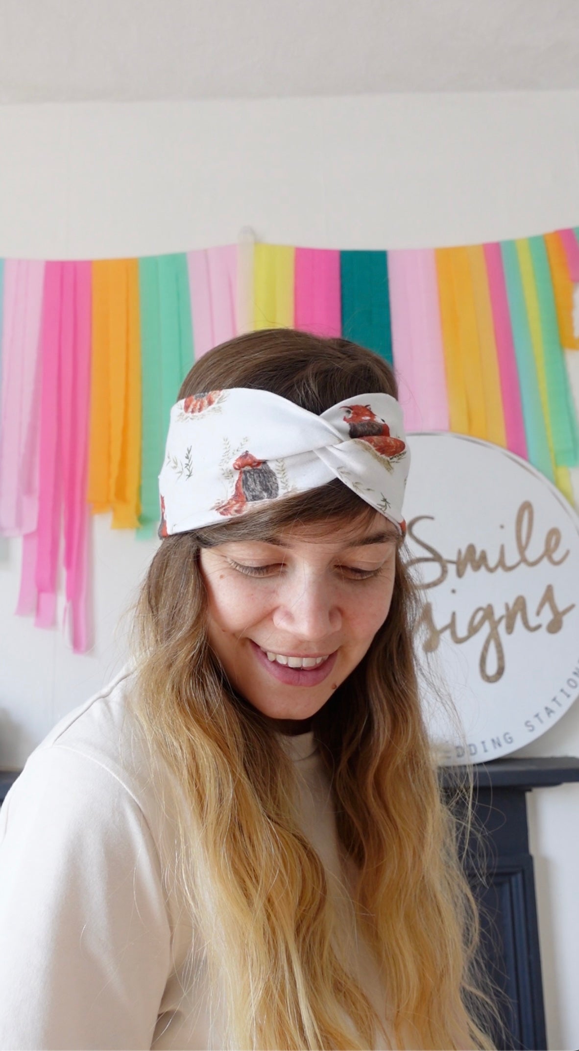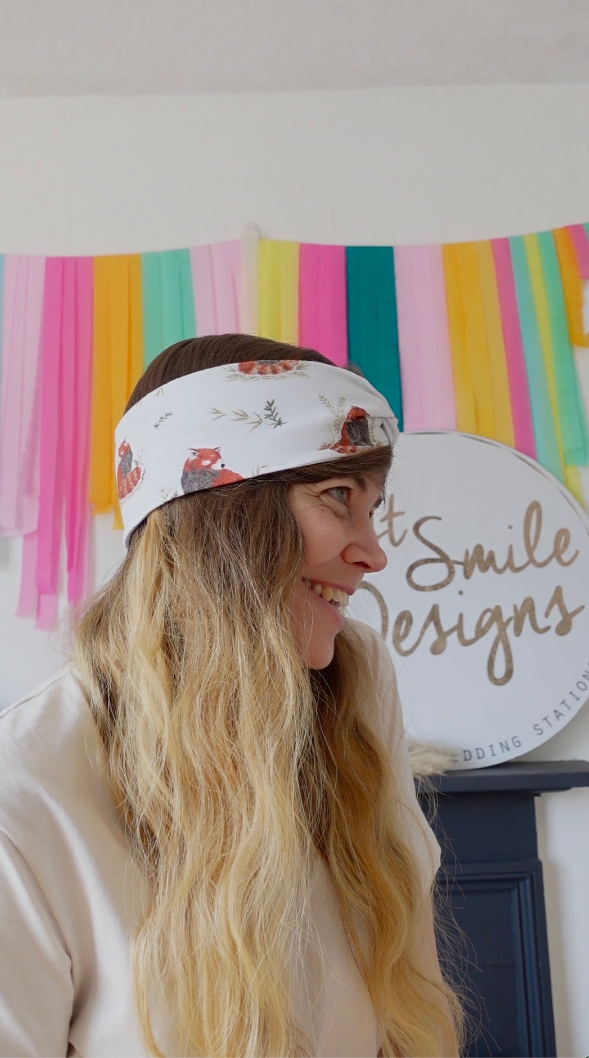 Each headband the pattern placement will vary as it’s cut from my fabric