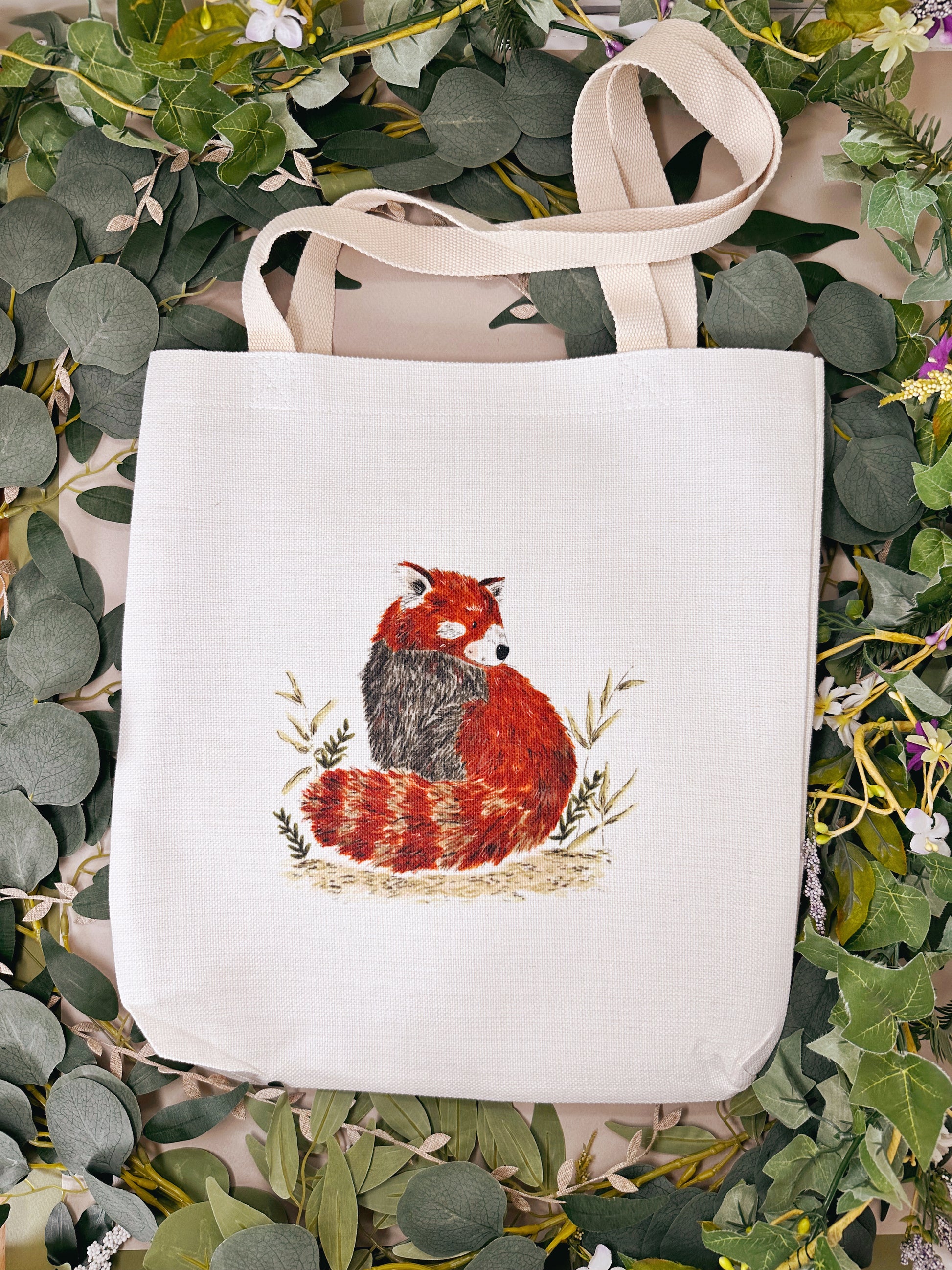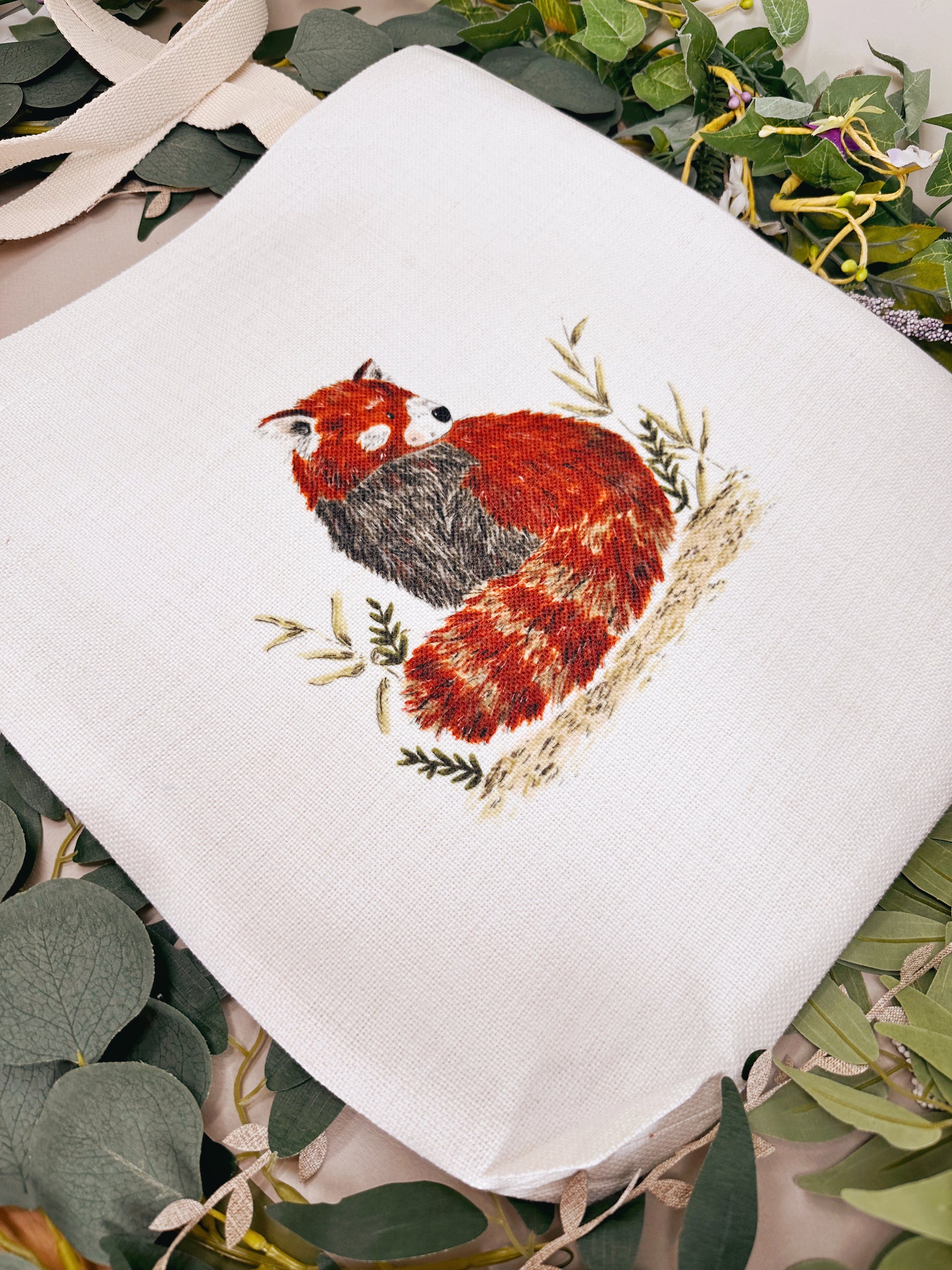 Red Panda Linen Tote Bag