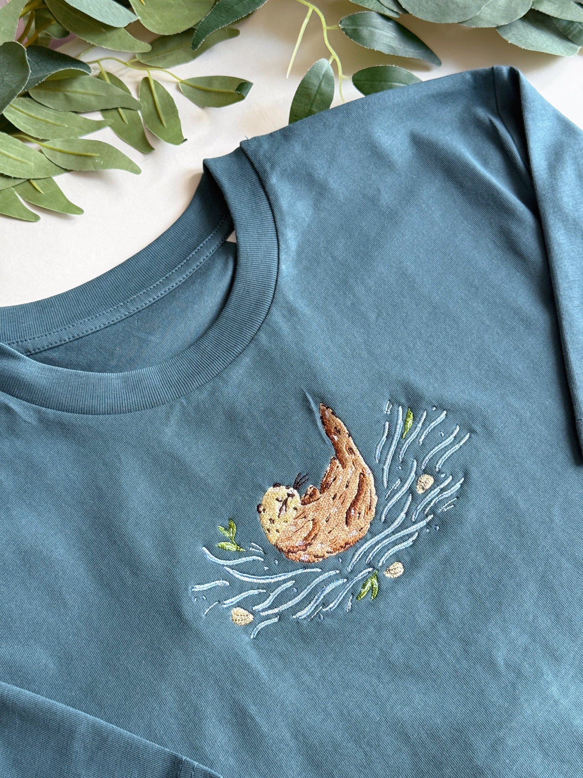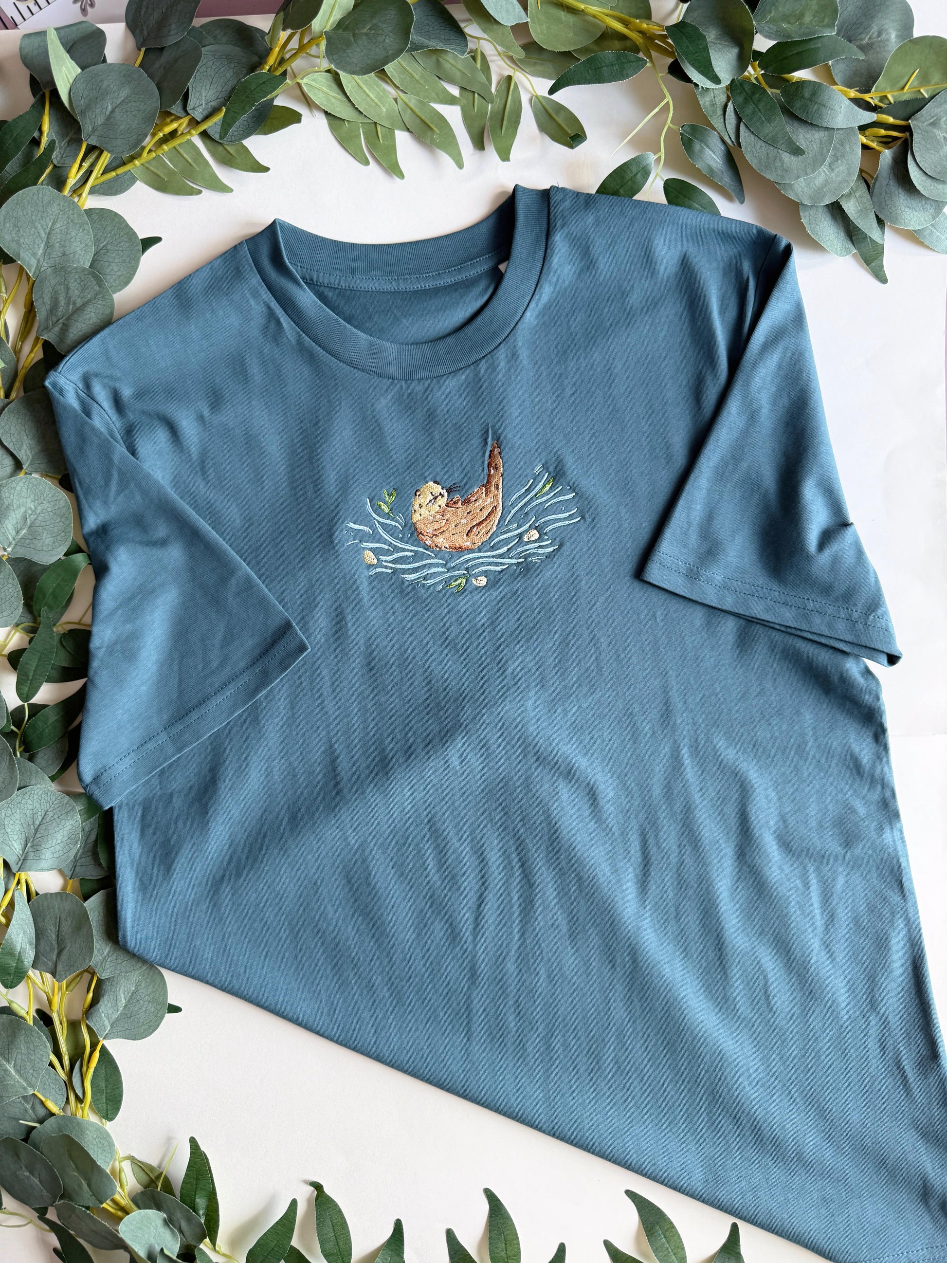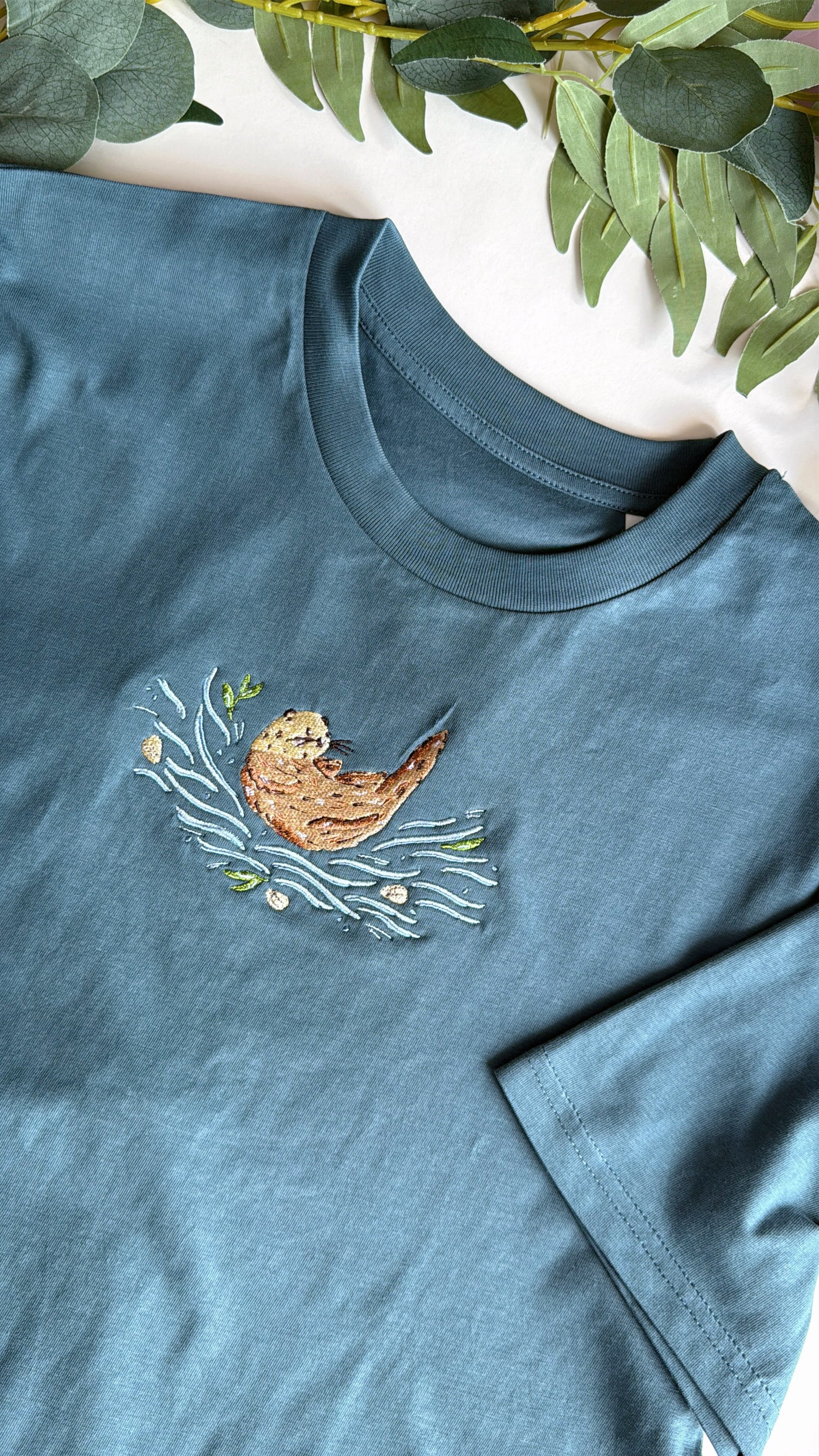 Sea Otter Embroidered T-Shirt - Organic Cotton