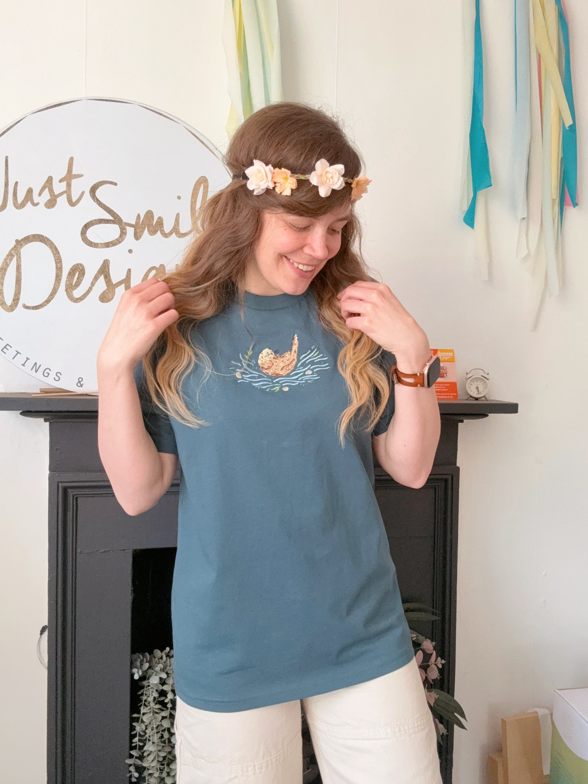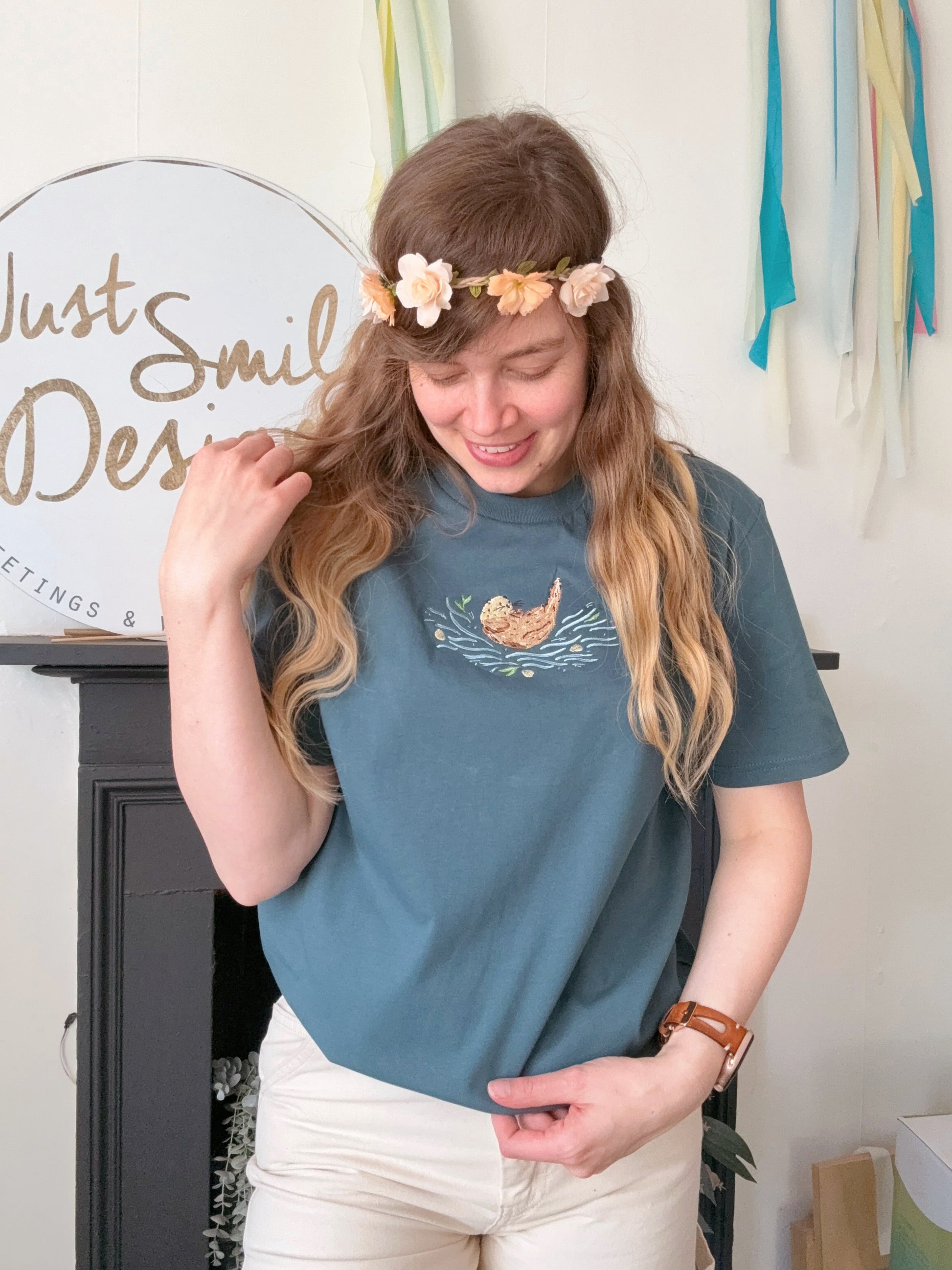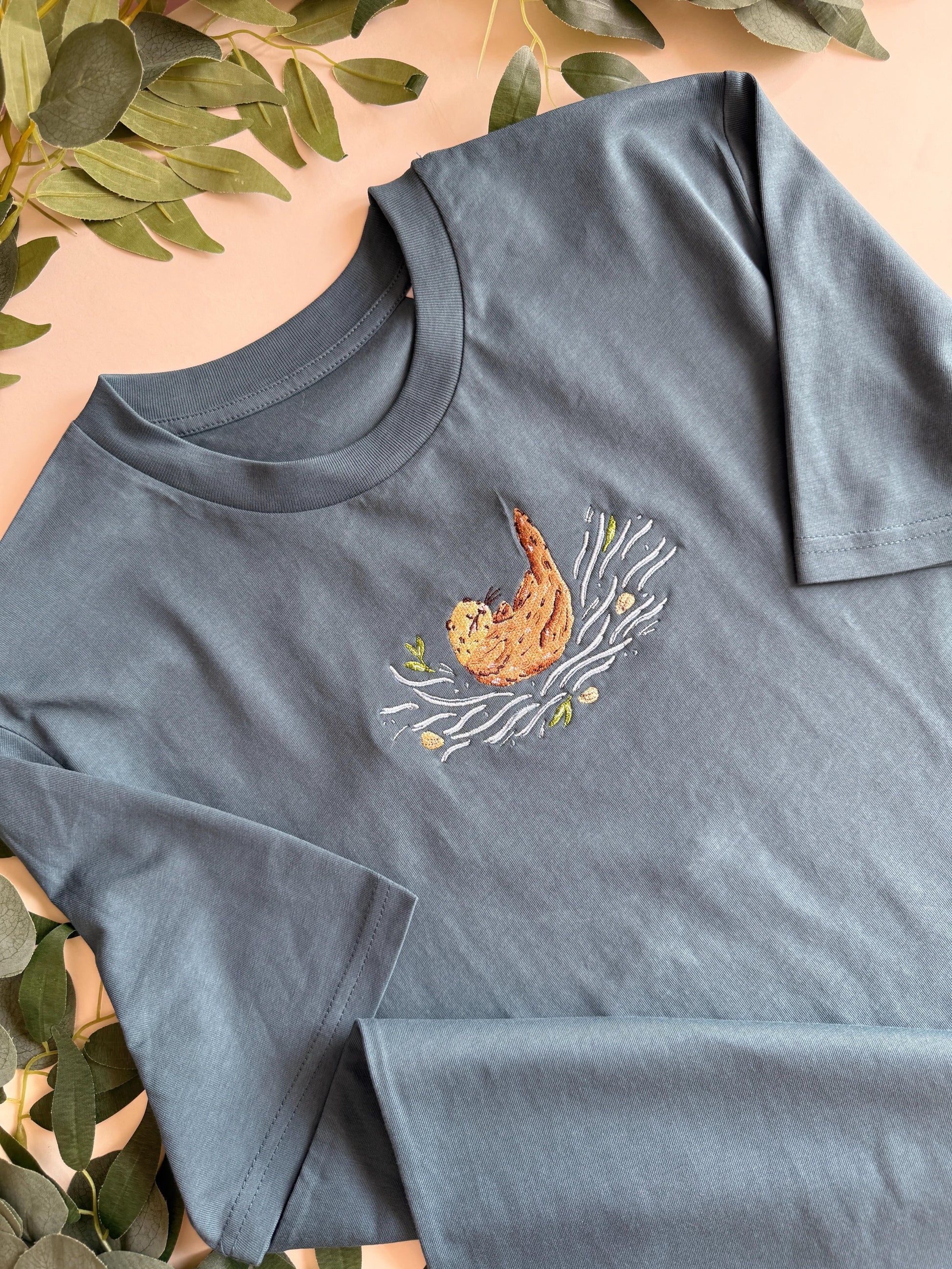 Sea Otter Embroidered T-Shirt - Organic Cotton