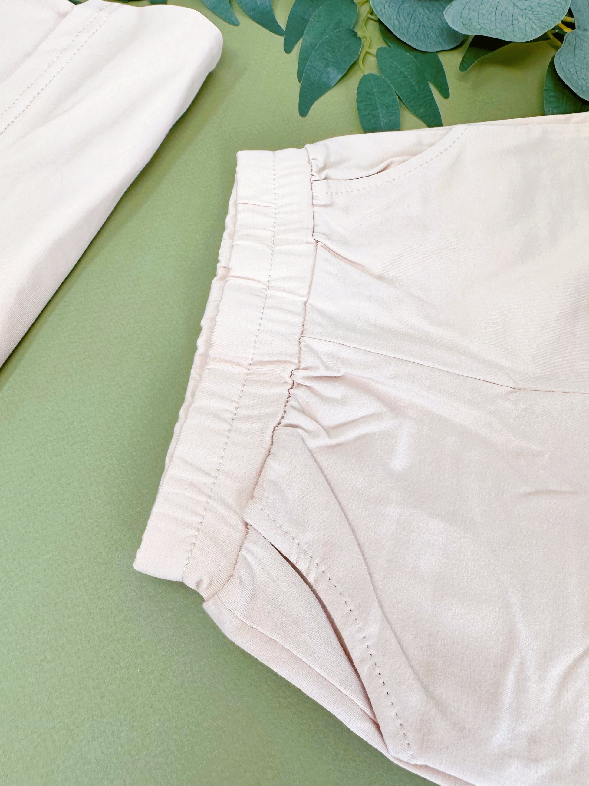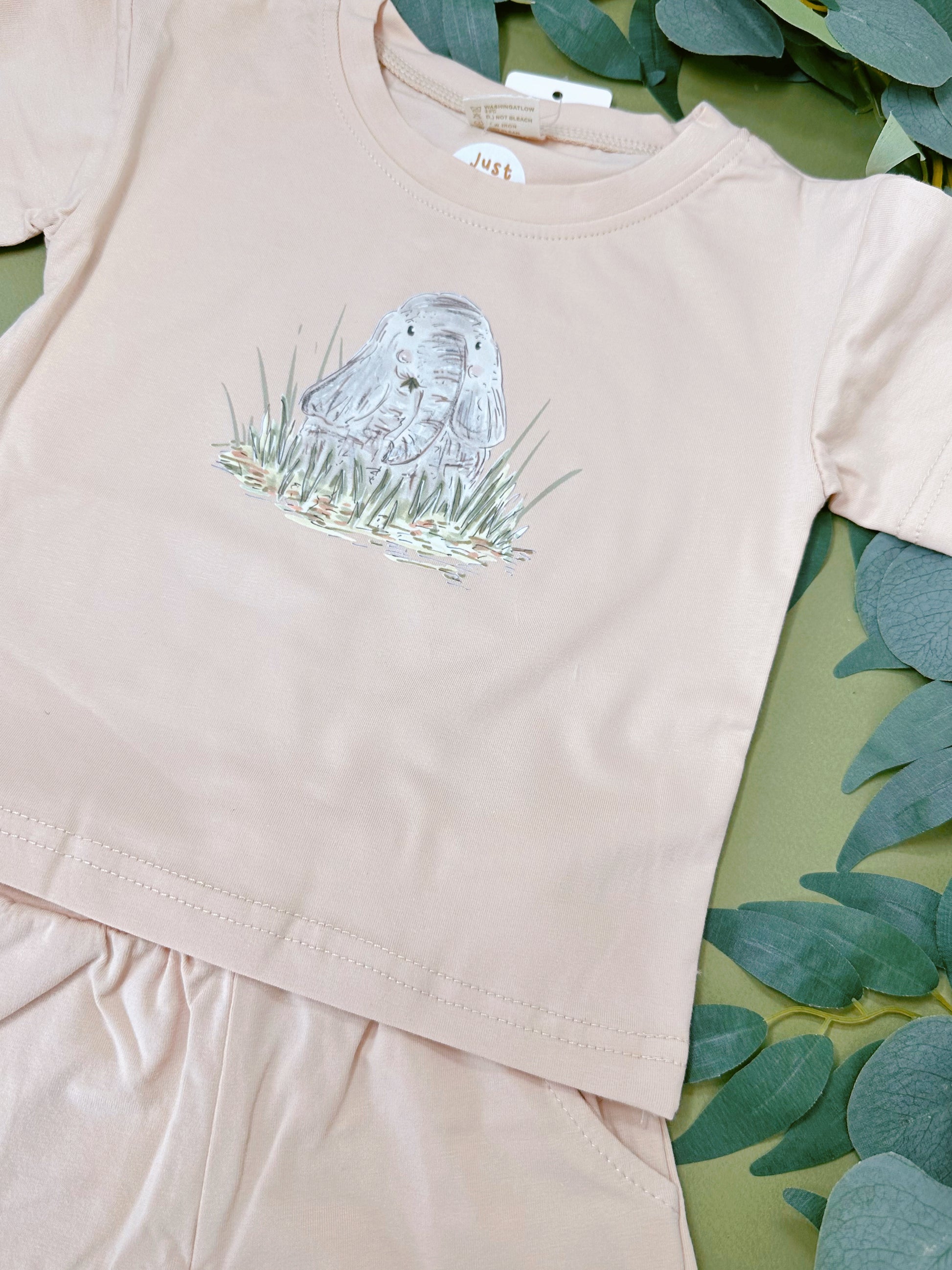 The fabric is soft and stretchy GOTS Certified Cotton Jersey. The fabric is printed with GOTS organic pigment ink