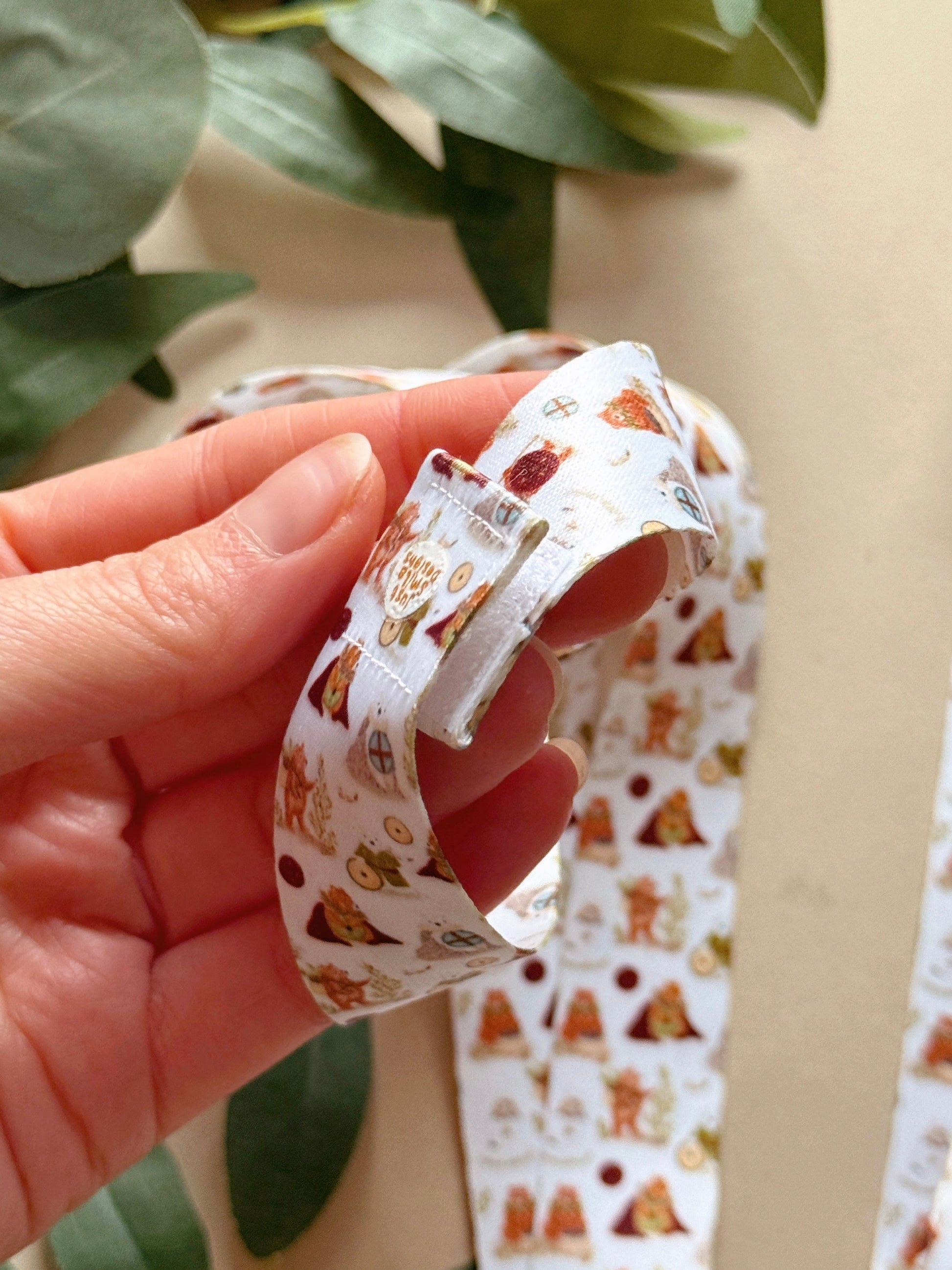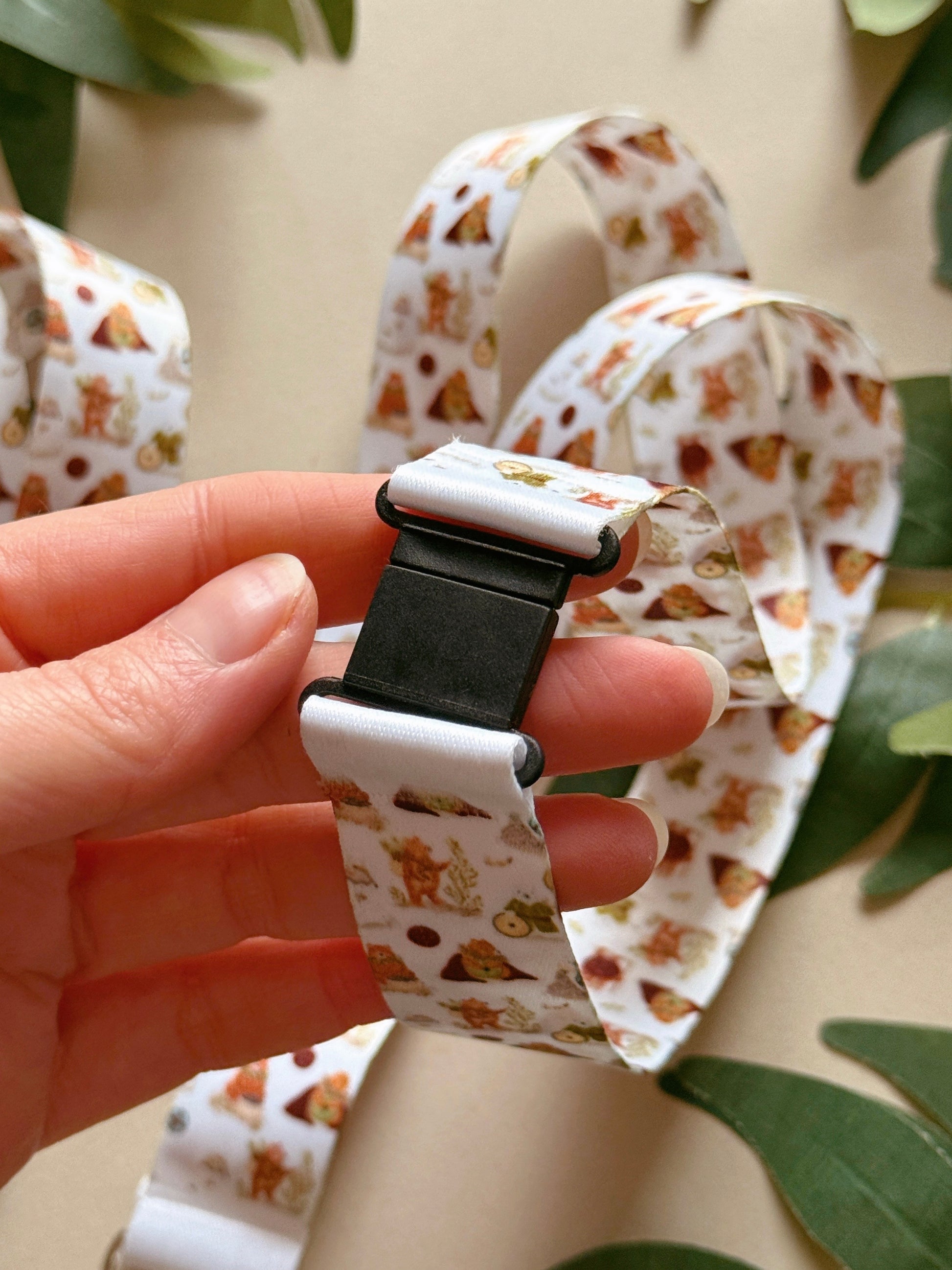 Velcro attachment on the end, lanyard full length is approx 42cm