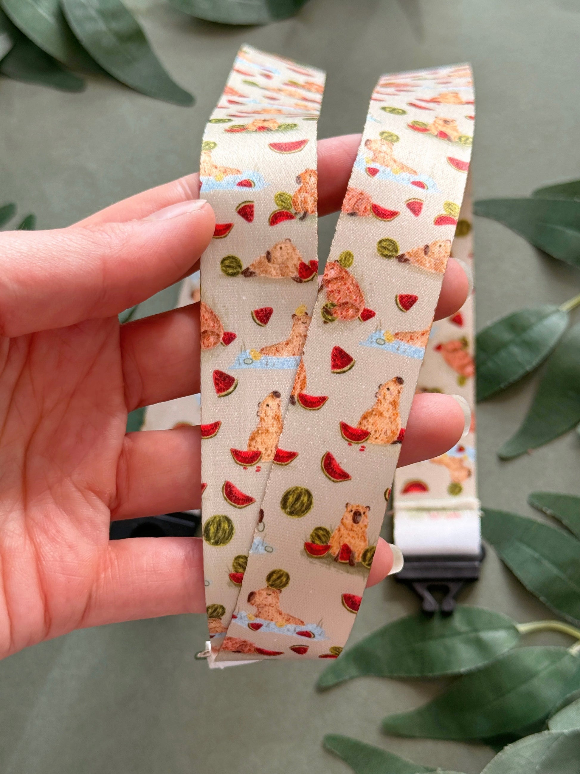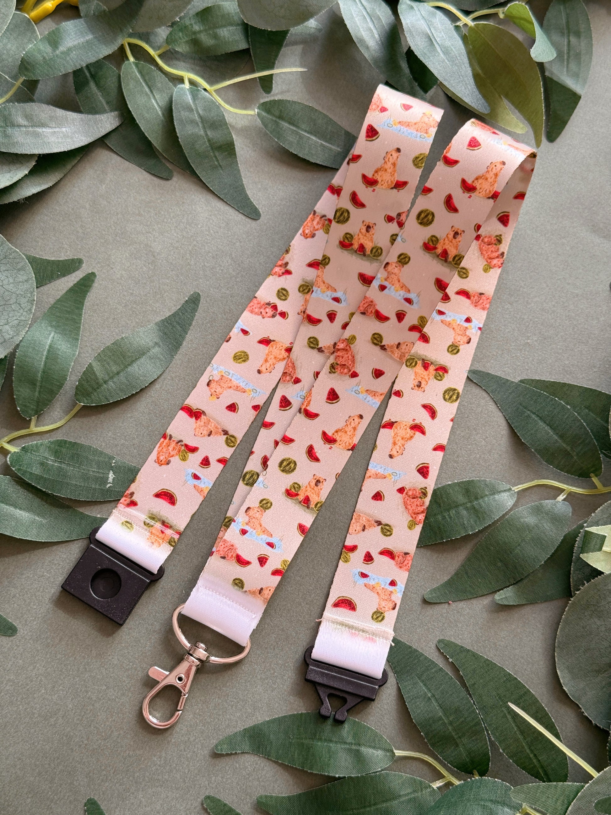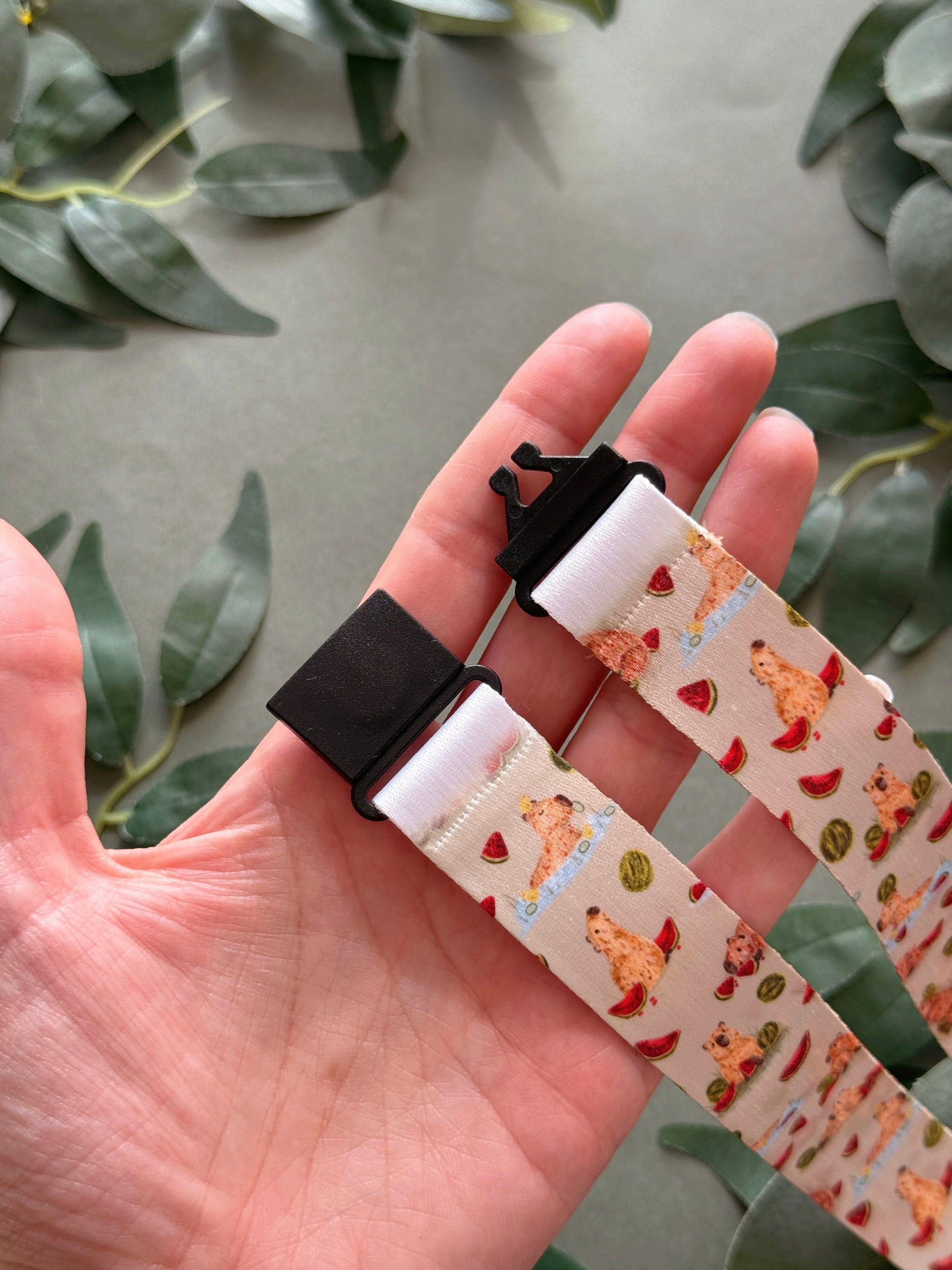 Velcro attachment on the end, lanyard full length is approx 42cm