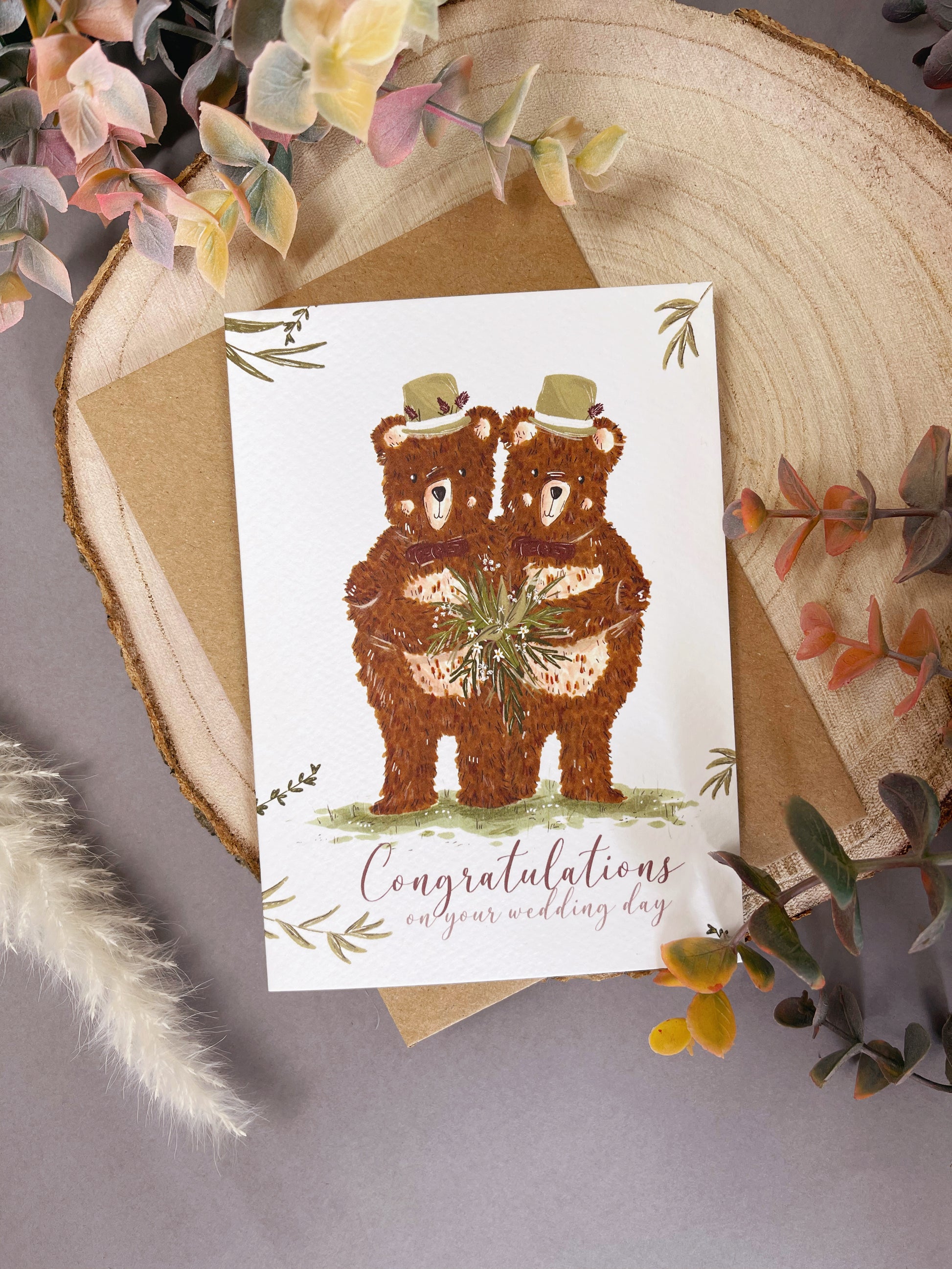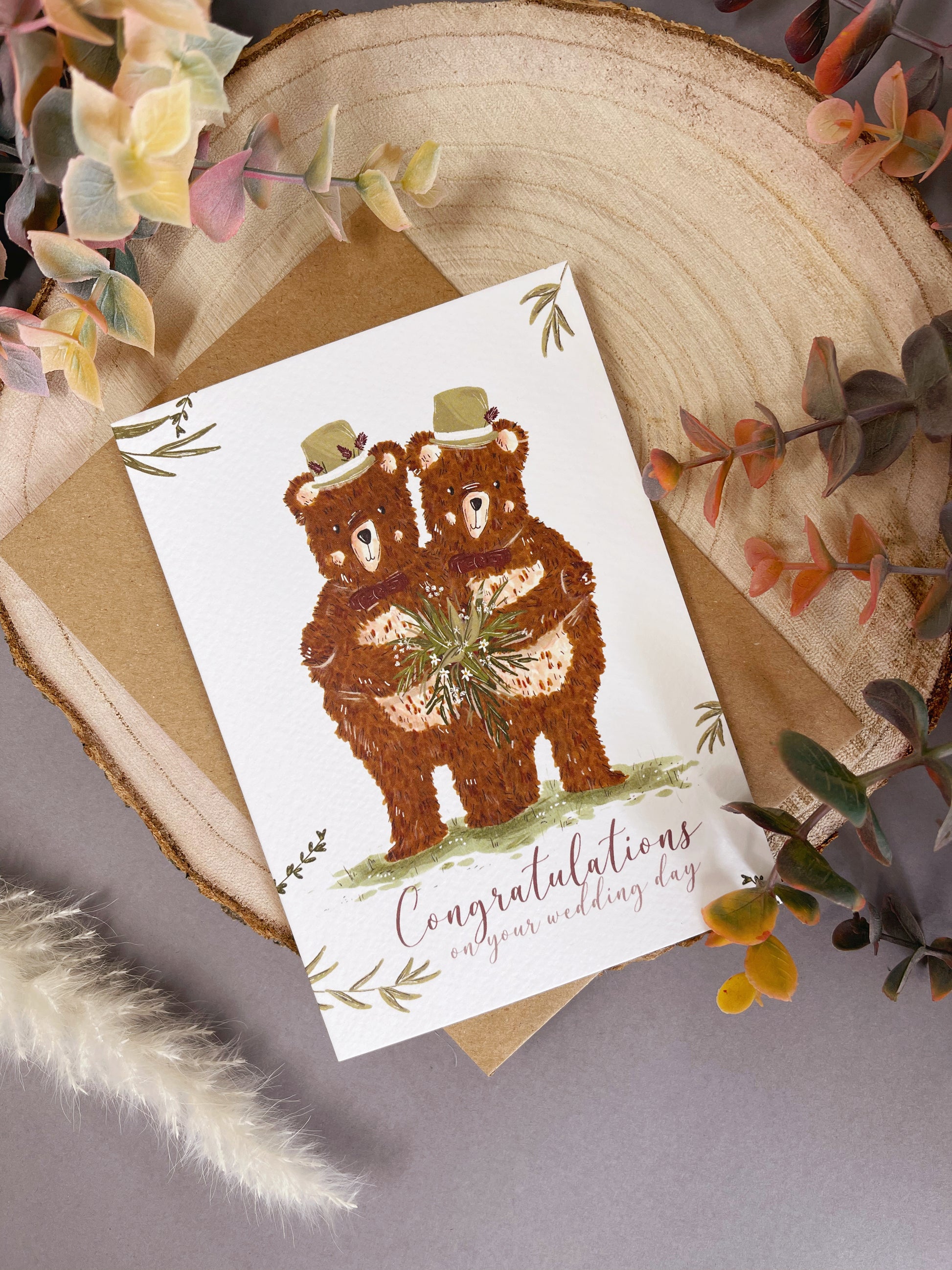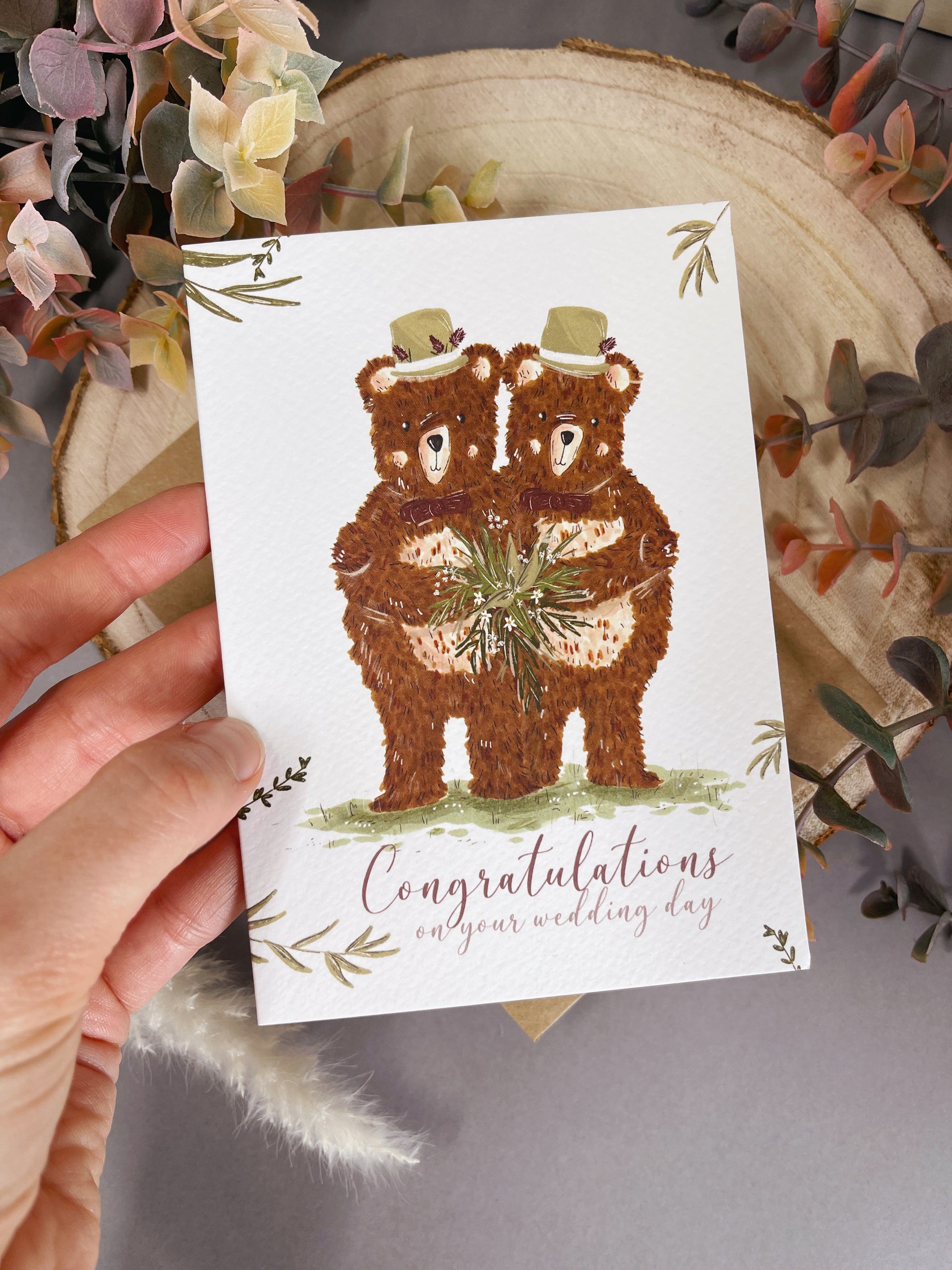Woodland Bear Wedding Card - Mr & Mr